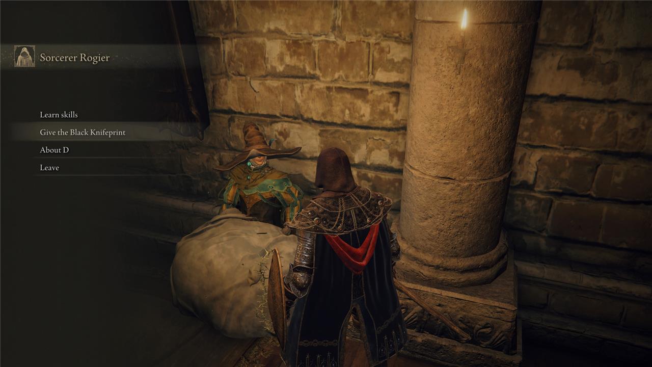Once you’re in possession of the Black Knifeprint, talk to Rogier and give him the Black Knifeprint. After exhausting the dialogue, reload the game and talk to him again. This time he will tell you to look for Ranni. Ask Rogier about Ranni’s whereabouts for him to tell you that she must be hiding in a manor to the north of the Academy of Raya Lucaria.