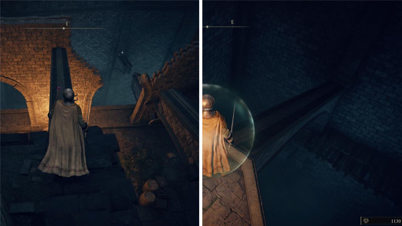 On the balcony, enter the door to access an inner part of the castle. Be sure to go left first and open a shortcut to the Liftside Chamber Site of Grace. Now, you can return and go right. Use the beams to reach the lower levels until you’re on the ground.