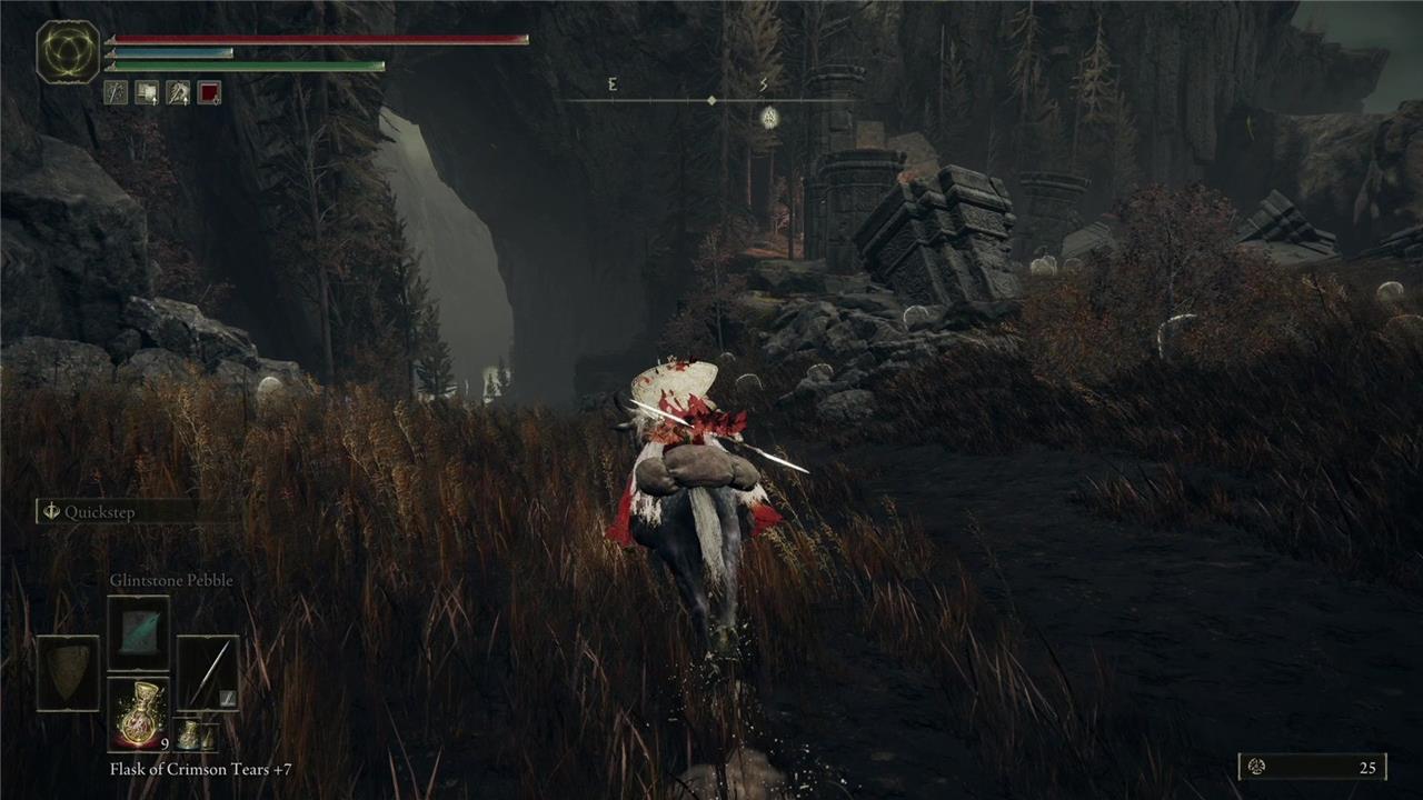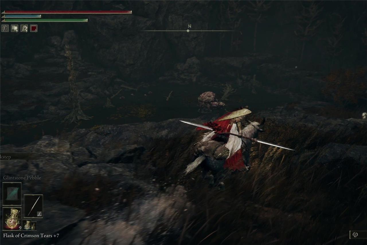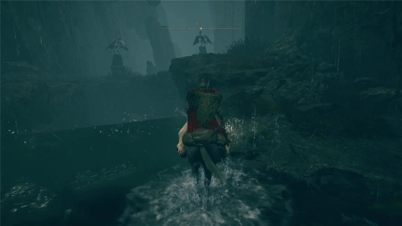 At the bottom, you’ll be at the top of another waterfall, with a number of birds perched on graves ahead. Going along the left, you want to sprint past all these on Torrent as fast as possible, as they will attack as soon as you approach. Provided you get hit just the once, you should survive – but if you’re struggling here, try getting some Scadutree Fragments to boost your defense.