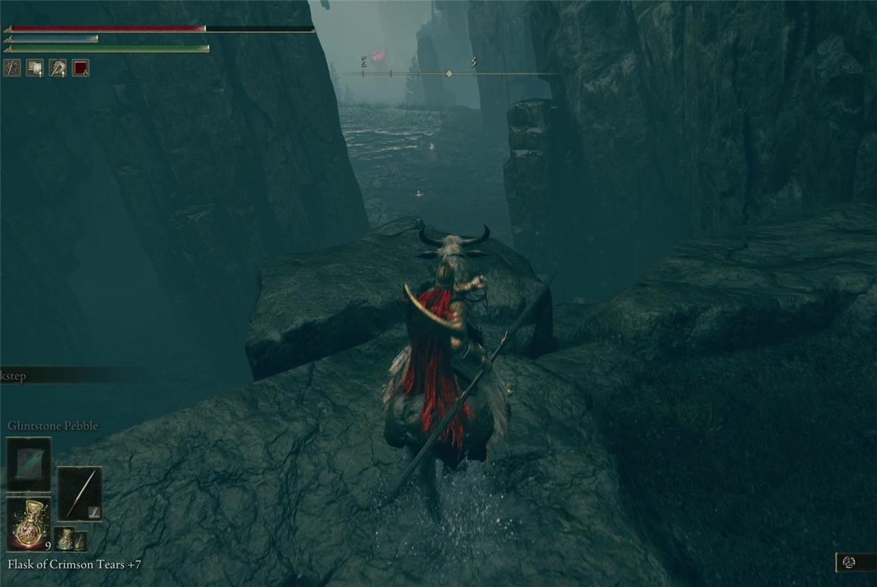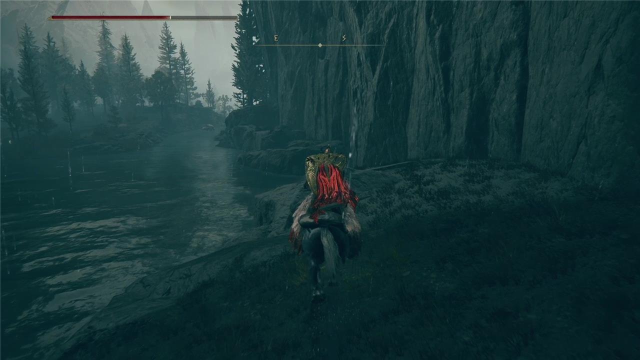 If you aren’t already, ride Torrent, and proceed onwards, where the route will swiftly open up. Stick to the left, and you’ll be standing at the top of a waterfall, with a series of isolated rocks in front of you. The following section essentially has you follow a river downwards, but let’s take it step-by-step.