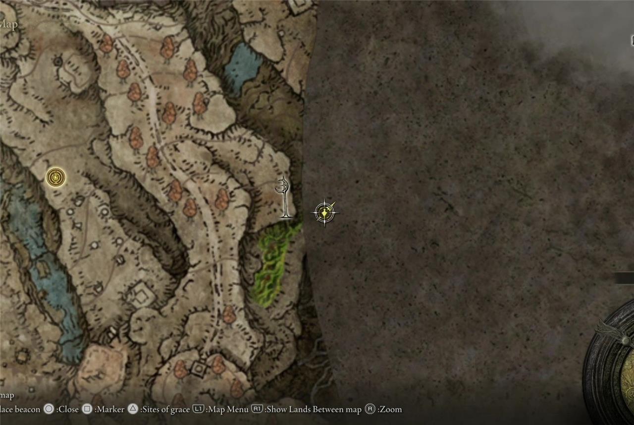 Before you travel away, however, we highly recommend you proceed south, following the path through the open area, where just to the other side is the area’s map fragment. There’s also a Miquella’s Cross and a Scadutree Fragment just to the south, too.