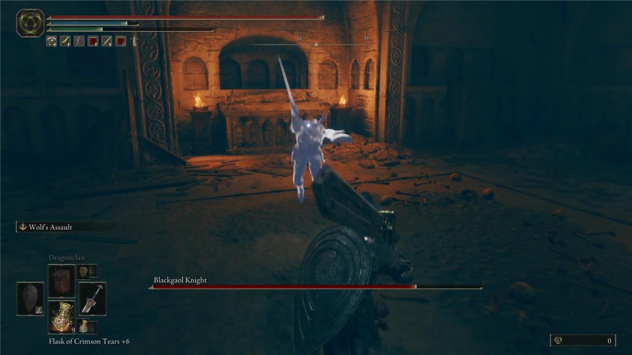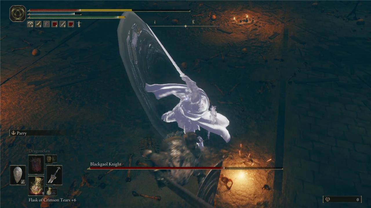 As far as I could tell across a dozen battles, the Blackgaol Knight resists all status ailments. He won’t bleed or suffer from rot, poison, or frostbite, so don’t waste your items and time trying to inflict special effects on him.