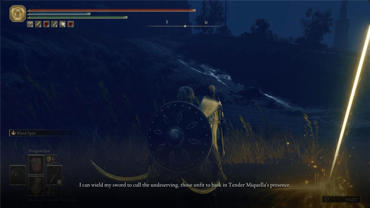At the start, Hornsent makes it clear he does not forgive the player’s kind and views the Erdtree as his people’s enemy, betrayed by Marika’s flame. Yet, he respects his oath to Miquella and offers help as long as you follow Miquella’s path, showing his grudging faith in Miquella’s intentions despite his hatred for others.