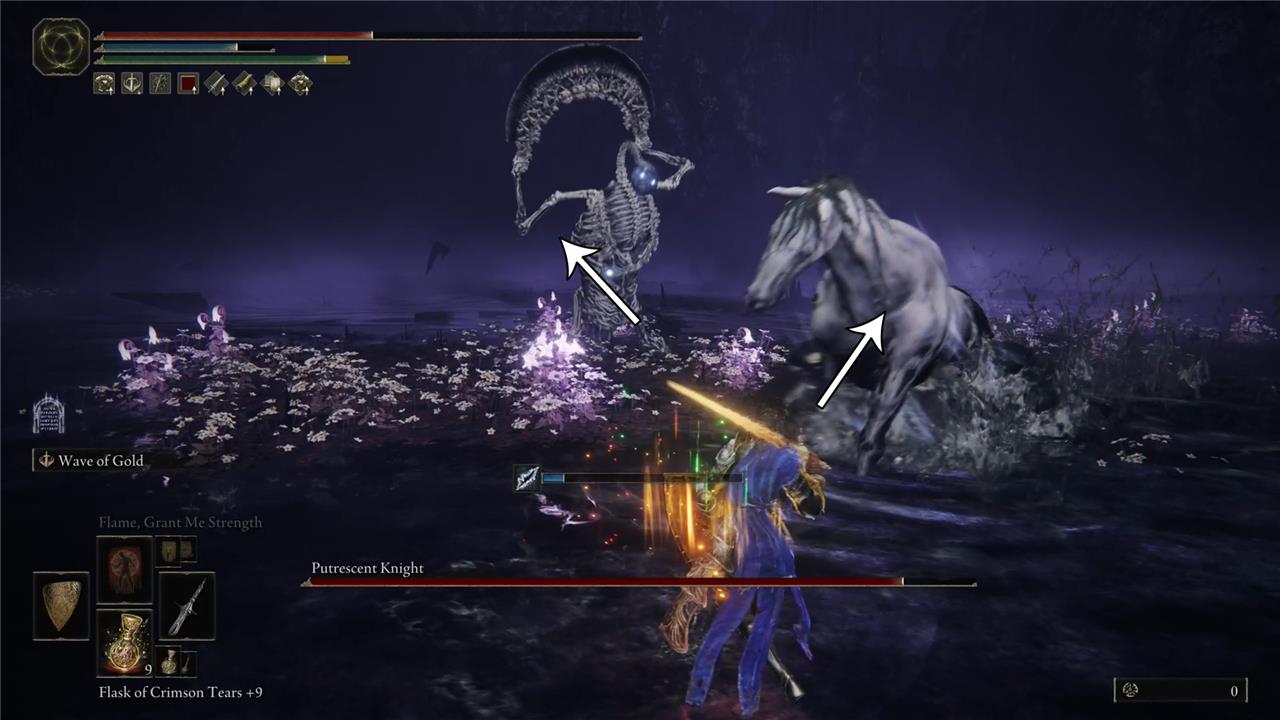 Watch the horse’s unpredictable attacks: The Putrescent Knight’s horse can ram you from various angles unexpectedly, so stay vigilant and roll accordingly to avoid these hits.