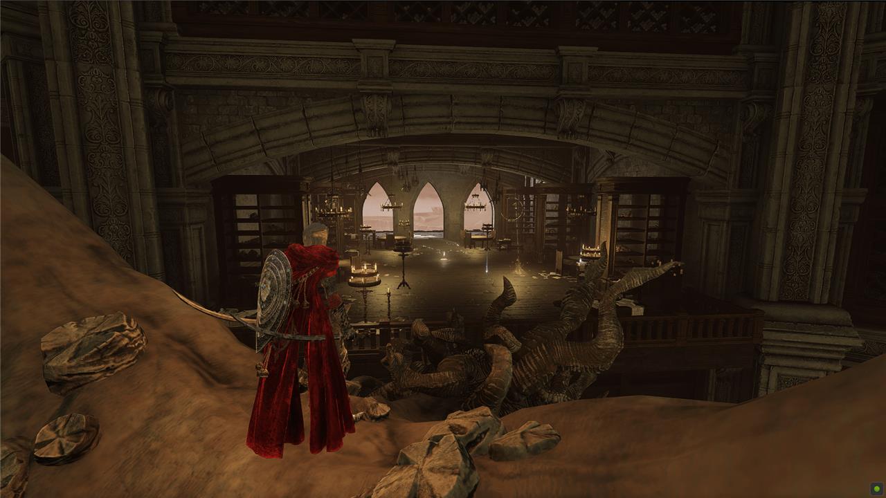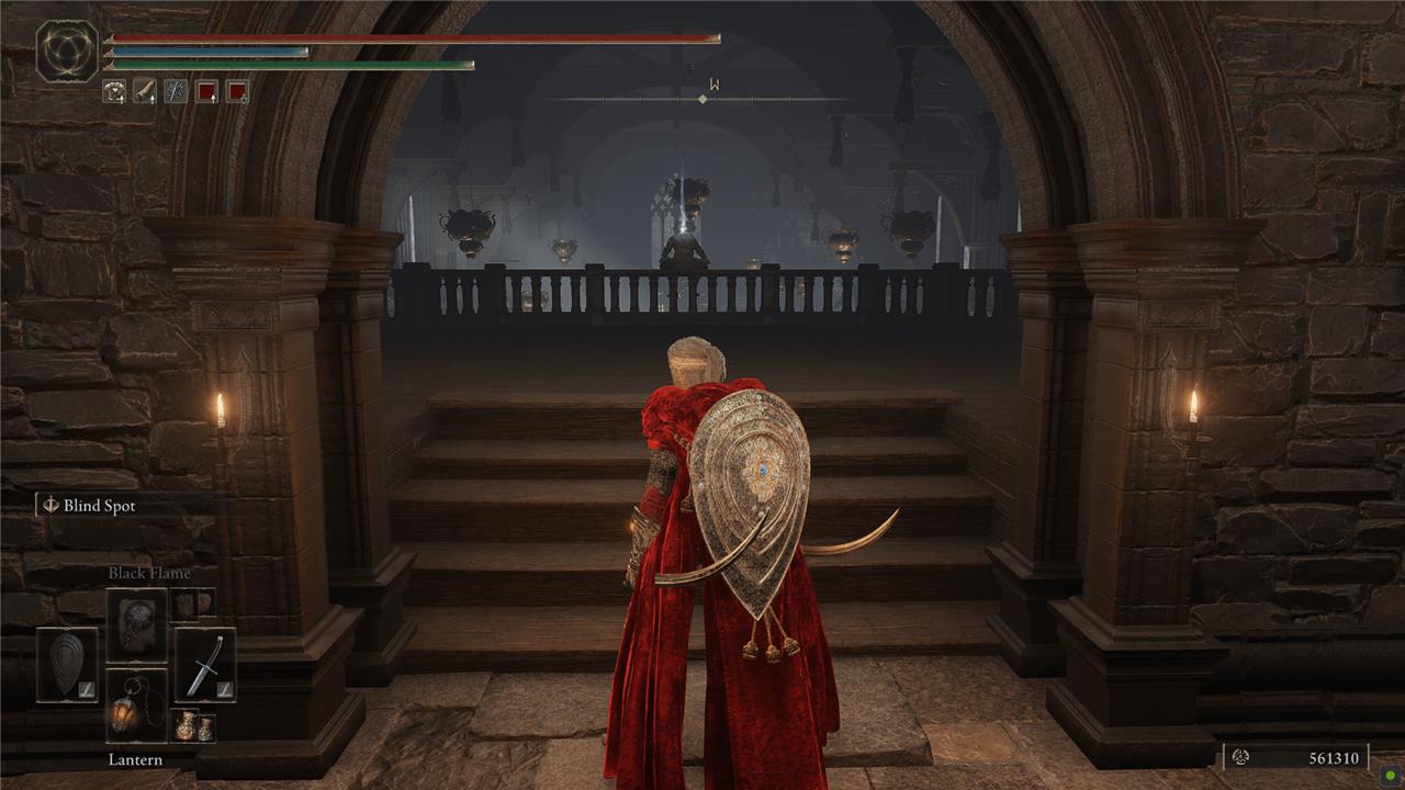 On the next floor up, turn back to the south and take on the Fire Knight before they notice you. Check the room to the west for some more enemies and items. When you’re done, head onto the balcony around the center of the room.