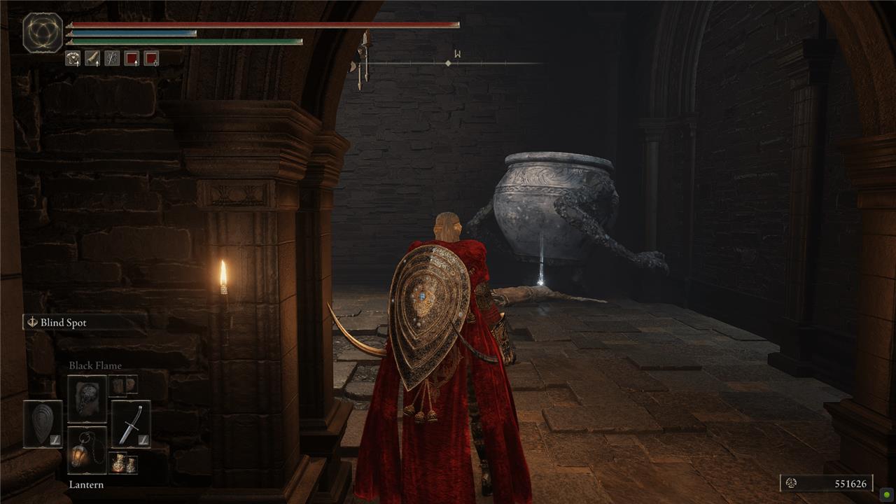 Back out of the room and head down the stairs. Clear out the Those Who Live in Death and the Living Jars in this room and the next. Head over to the left to find an Iris of Grace and a Hefty Cracked Pot under the balcony where you grabbed the Ash of War a second ago.