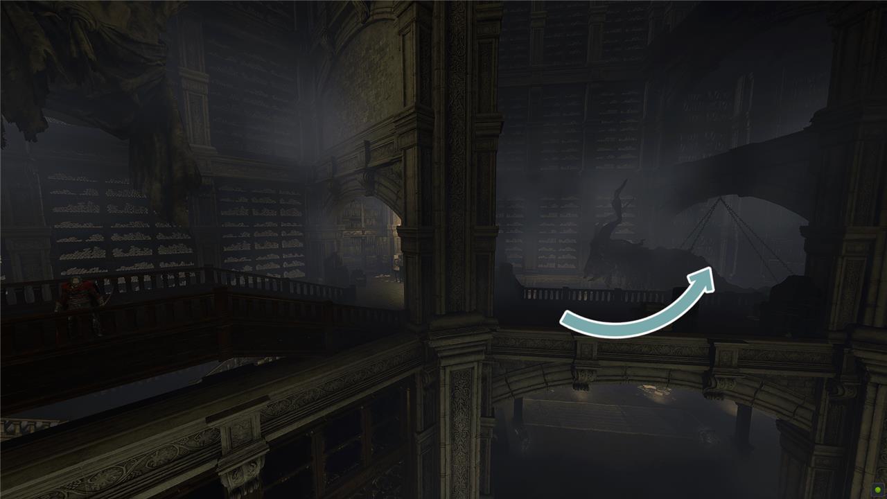 From the Storeroom, First Floor, start around the room heading left and take the first left. Take out the Shadow Undead and collect the Rune Arc you find there. In the next room, you’ll find an elevator that goes (a long way) down.
