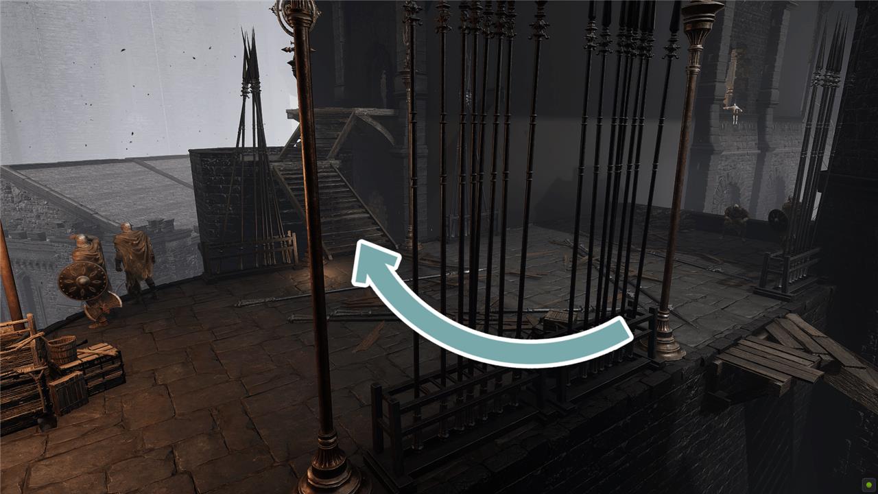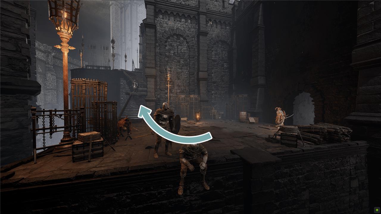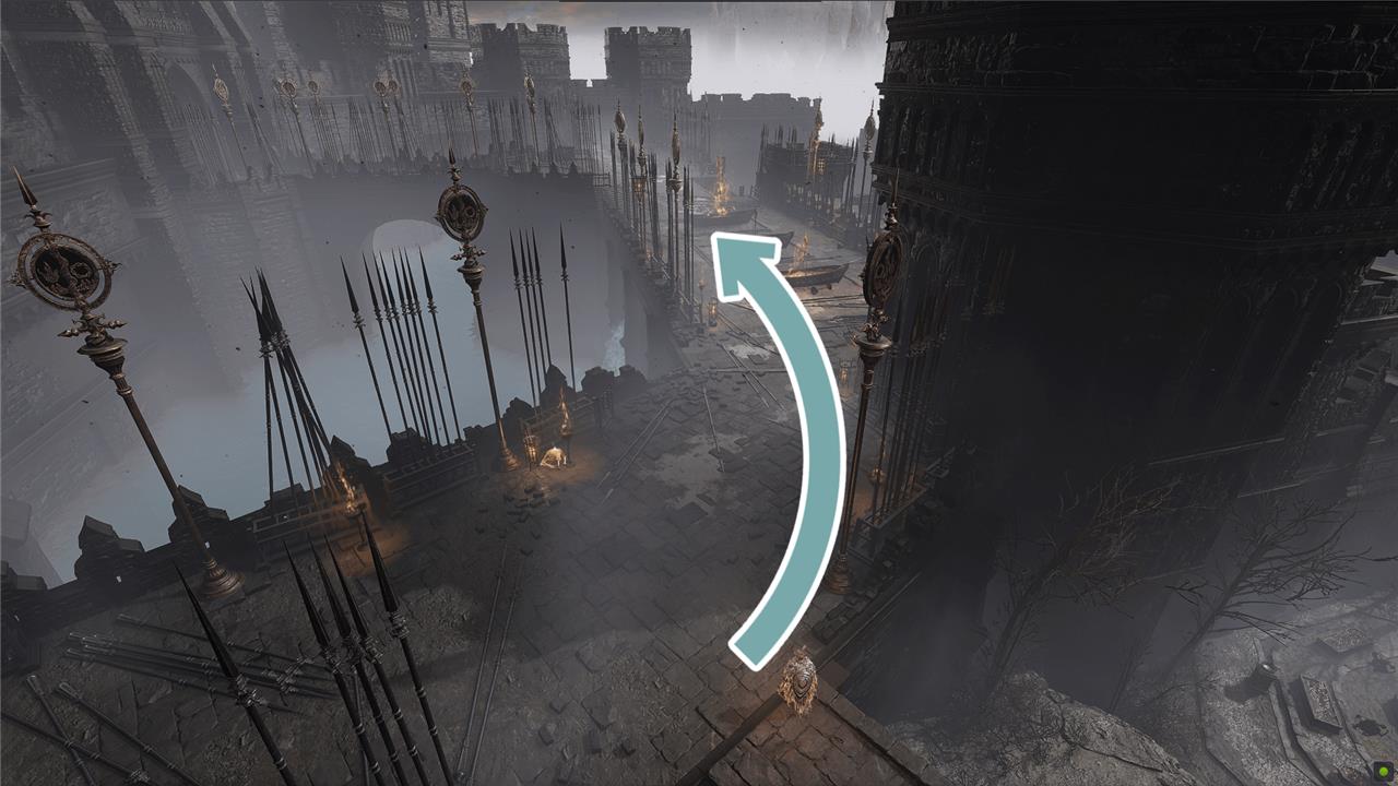 At the center of the rampart, take a right and go down the long ramp, taking out Vulgar Militia as you go. Take a right at the bottom and push open the door to open a shortcut back to the Main Gate Plaza Site of Grace.