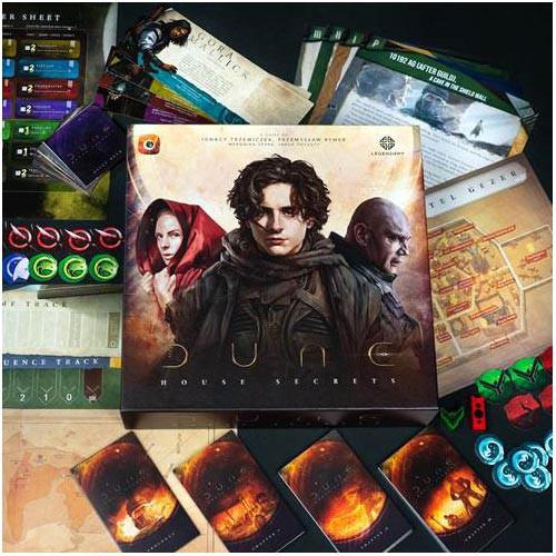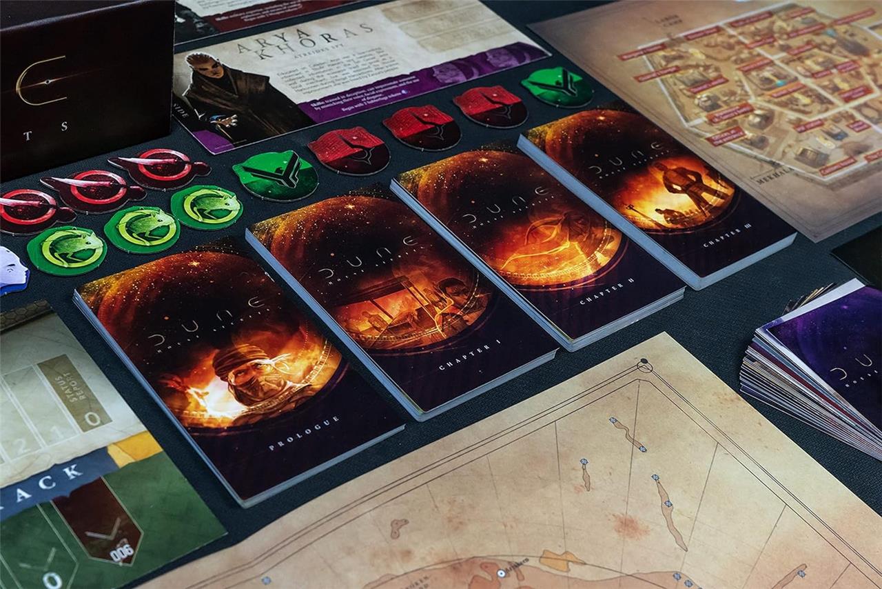 Dune: House Secrets is a cooperative, narrative-based card game with some slick artwork, adapted from Portal’s Detective: A Modern Crime Board Game. House Secrets can be played solo, but supports up to four players who take on the role of original characters in a three-part narrative adventure that plays out like a detailed “choose your own adventure”. You’ll utilize assets and chase down leads in an attempt to unravel a labyrinthine plot nestled in the lore of Frank Herbert’s universe. AJ