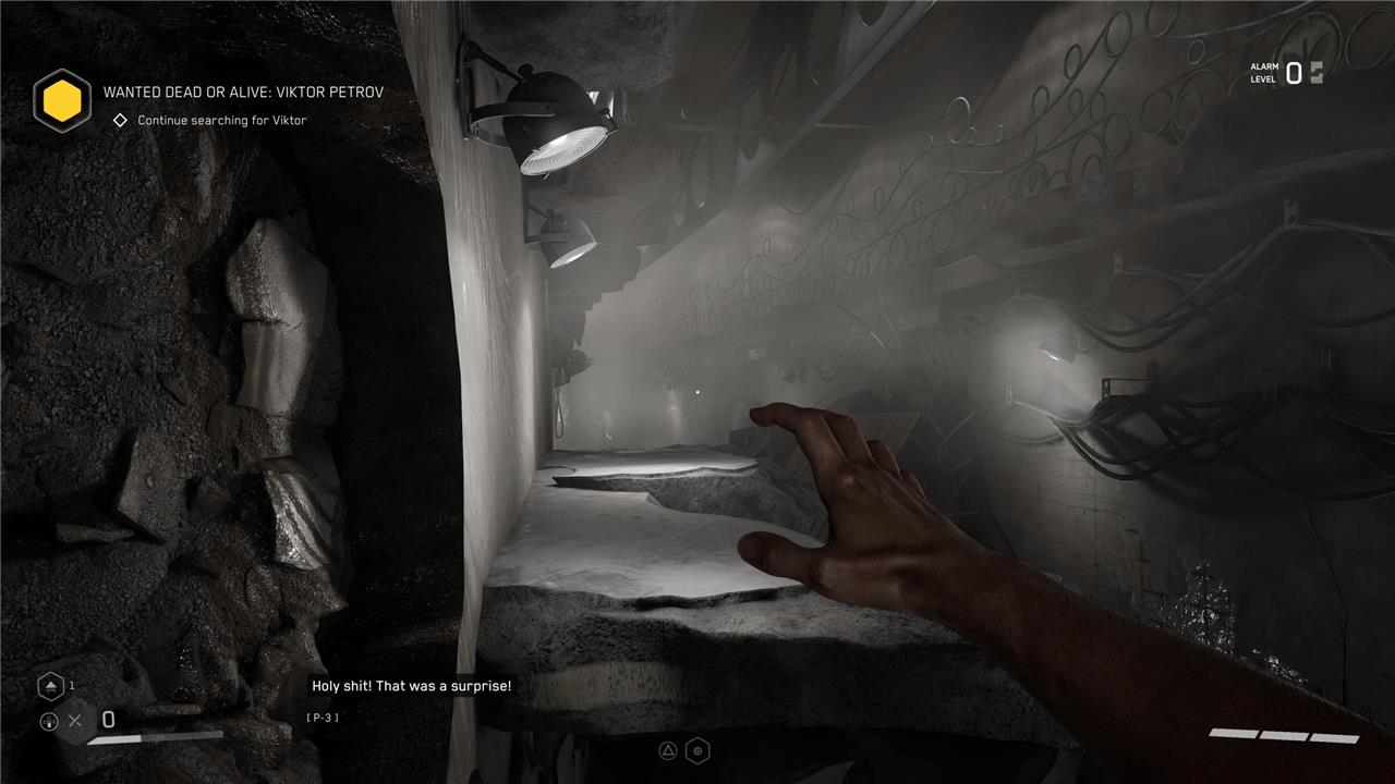 There aren’t many platforming sections in Atomic Heart, but the few that show up are clunky, plodding, and arduous – not the sort of thing you want to repeat. It’s not always easy to gauge whether or not you can make a jump, but there’s one simple tell that works 100% of the time: If your hand is held outward (as seen in the screenshot below), you can make it. If it’s not, you can’t. And yes, there’s fall damage.