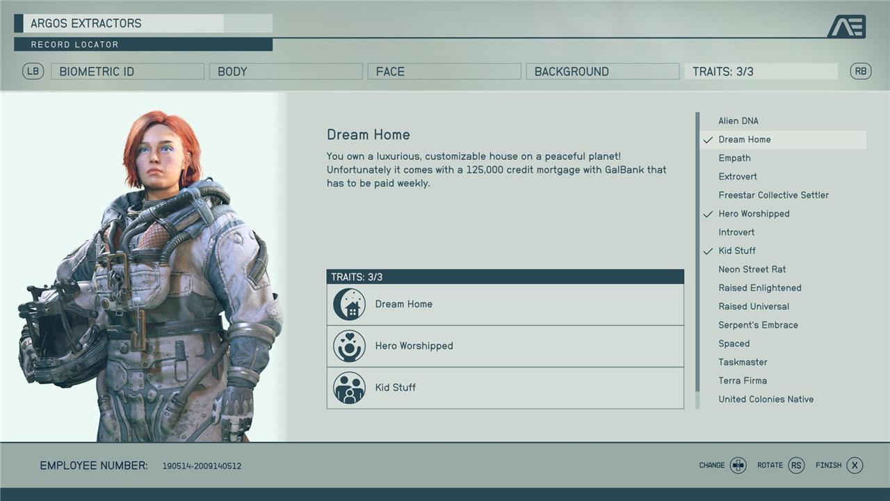 During “One Small Step,” Starfield’s first campaign mission, you’ll be directed to choose a background (a backstory for your character that also determines three skills you start the game with) and up to three traits (optional perks that both help and hinder your character). Don’t fret over your choice too much. Sure, you’ll get some bonus dialogue options here and there, but nothing that significantly alters the story. Instead, you should focus your choices on which skills you want to start the game with.