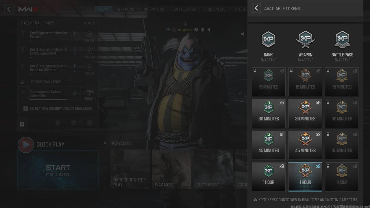 We’ll get the obvious one out of the way nice and early: use double XP tokens. These come in three different forms; double rank XP, double weapon XP, and double battle pass XP. Of course, these all speak for themselves as to what they actually do, but how do you get more of them?