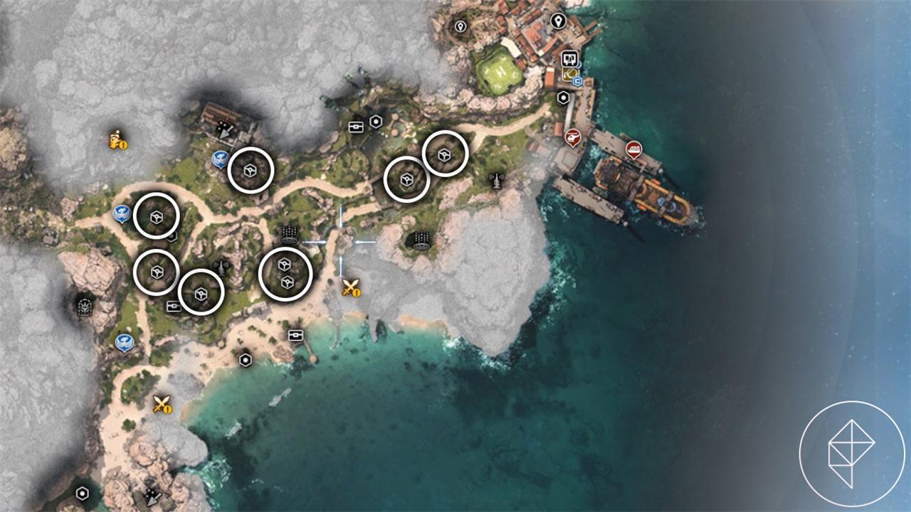 NC-8 Zipline (North of the Training Gym): Found north and slightly uphill from the Training Gym, close to NC-7, making it convenient to collect both in one visit.