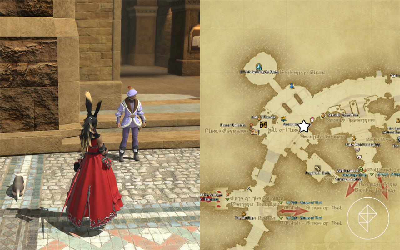 Once you meet those two requirements, head over to Ul’dah, Steps of Nald and talk to the Worried Weaver NPC at the location below to accept the quest “Enter the Viper.”