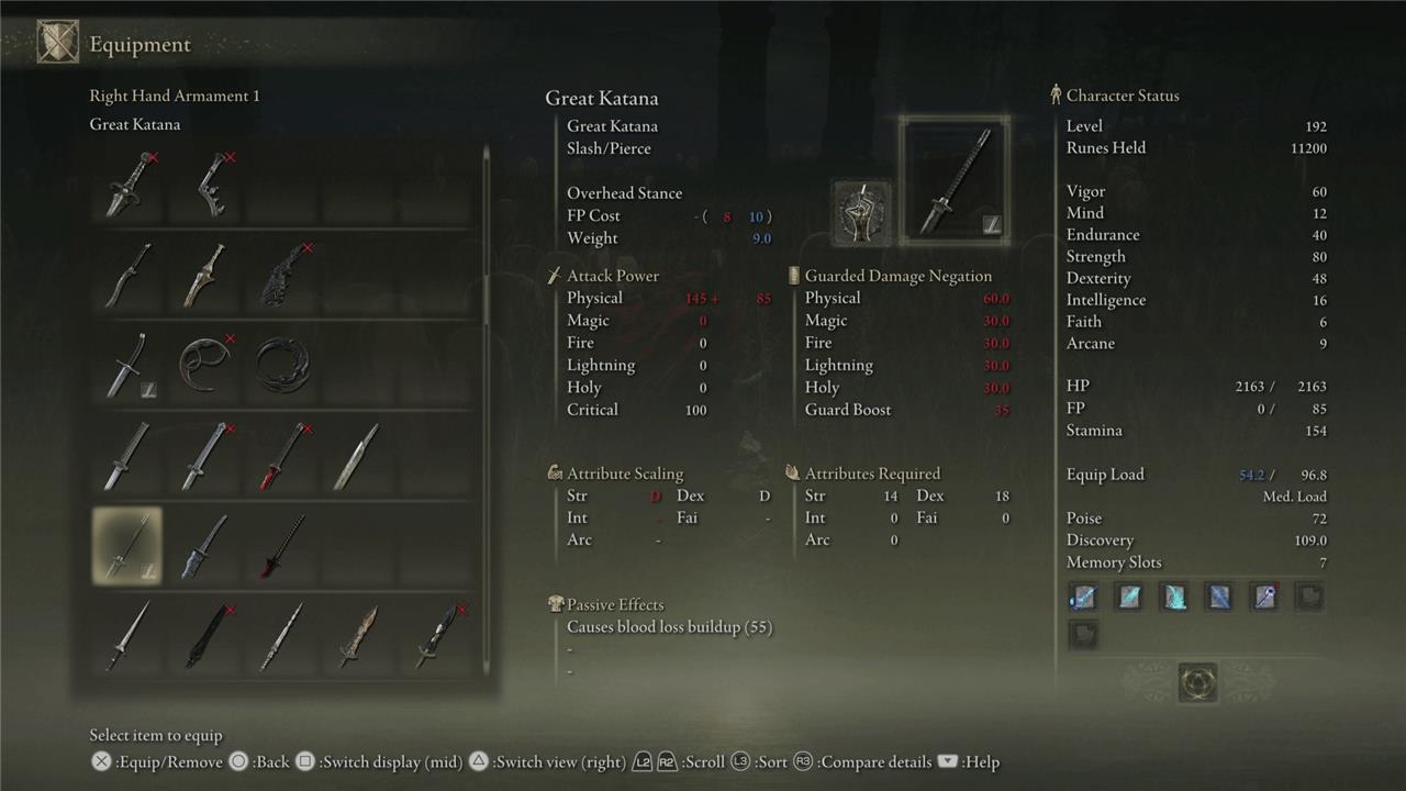 While multiple Great Katanas can inflict blood loss, Rakshasa’s Great Katana is the only Great Katana that exists now with Blood Loss, which allows for many Bleed builds to work with this weapon.