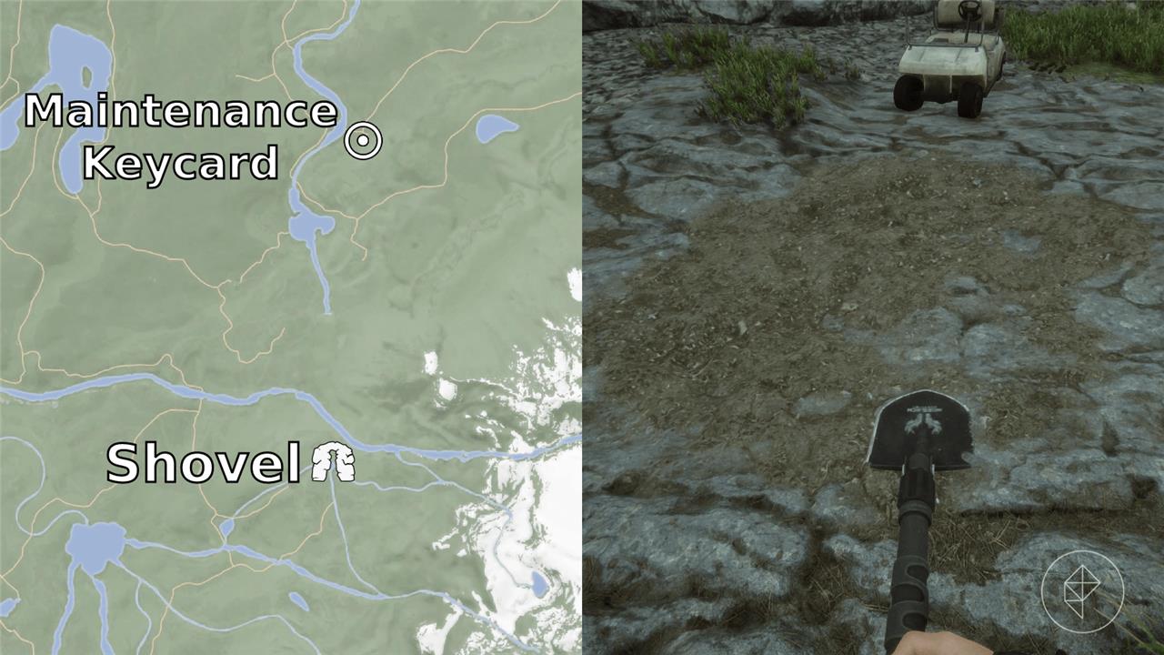 To get the maintenance keycard, you’ll need the shovel to dig up the entrance of the bunker.