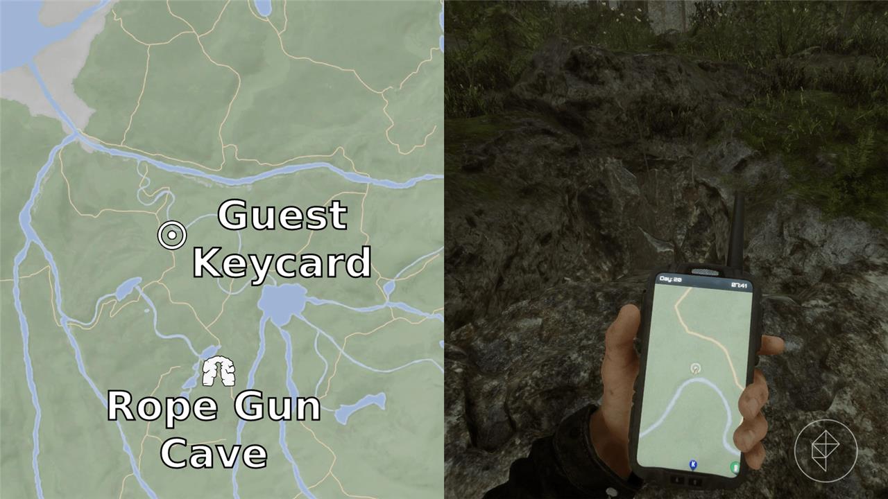 The Guest Keycard is found inside the Entertainment Bunker, located near the western lake on the map. To reach it, enter the bunker through the cave entrance and move through the corridors until you find a gym area. Continue past the pool and through the locked doors until you encounter several mutant enemies. The keycard lies on the reception counter inside the spa section. Picking it up grants access to several restricted areas, including parts of the luxury bunker and additional story-related rooms.