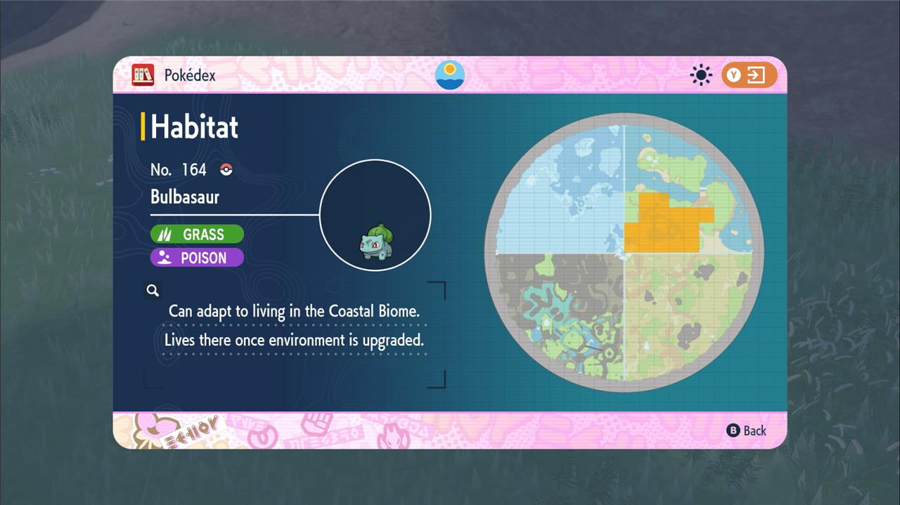 You can find Bulbasaur roaming around the grassy parts of the mountain in the southern part of the Coastal Biome.