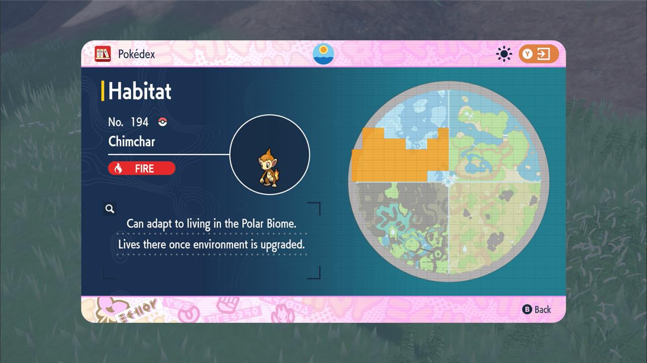 Chimchar is found on top of the snowy cliffs in the Polar Biome.