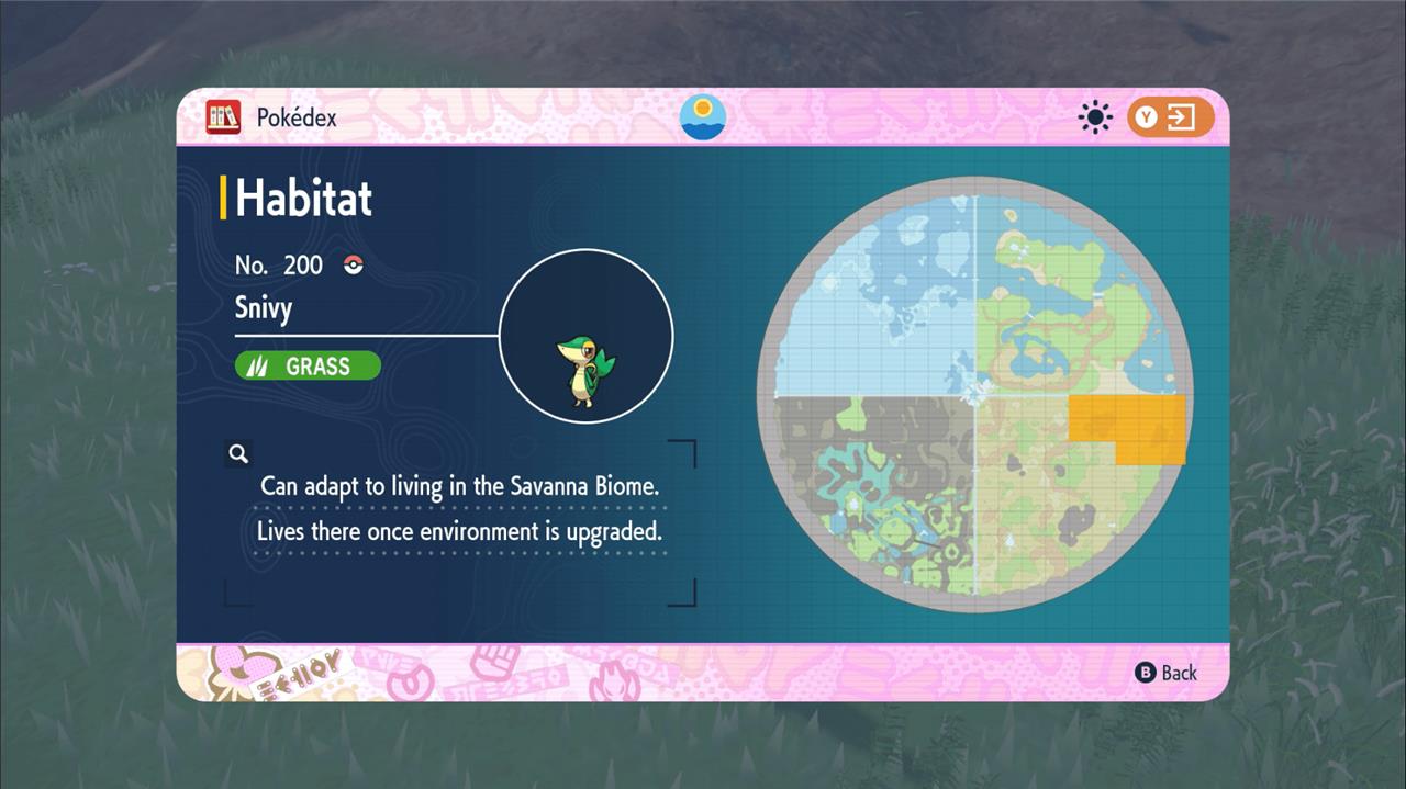 Snivy wanders around the northeastern part of the Savanna Biome.