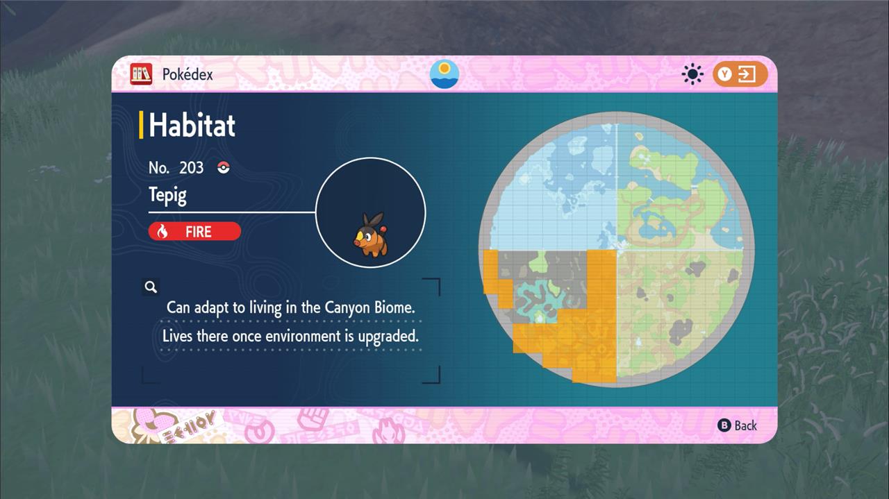 Tepig is in the southern parts of the Canyon Biome, but can also be found along the edges.