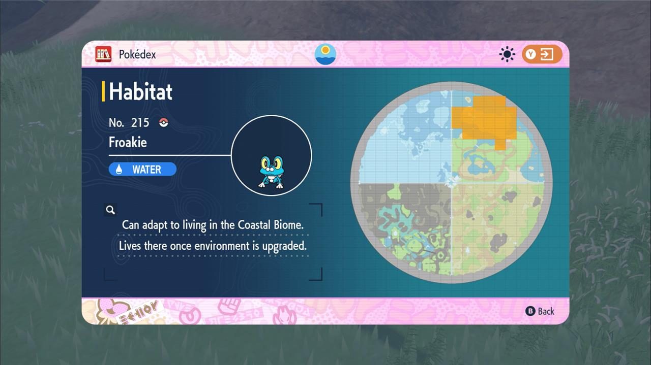 Froakie is around the waters in the northern parts of the Coastal Biome.
