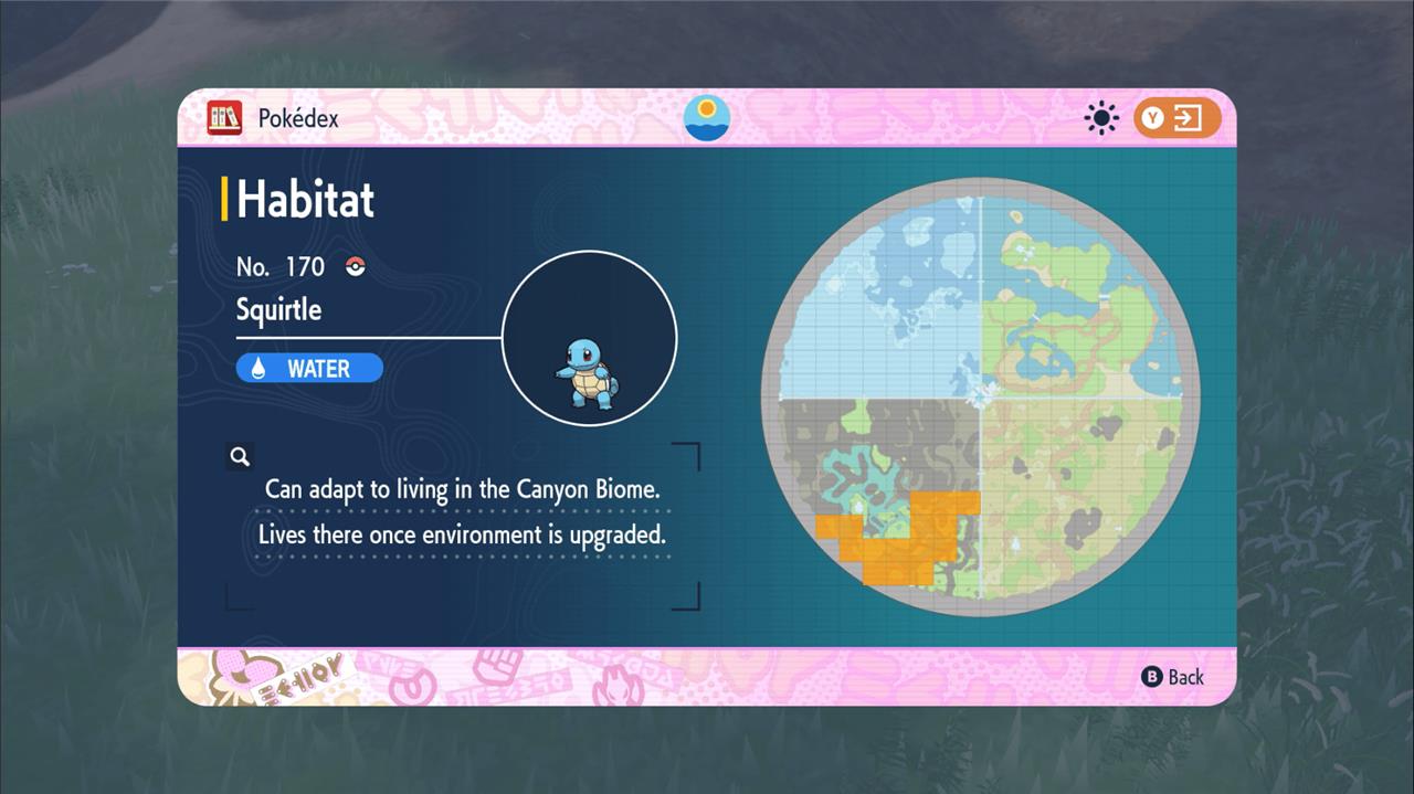 • Canyon Biome: Squirtle, Treecko, Turtwig, Tepig, Chespin, Litten