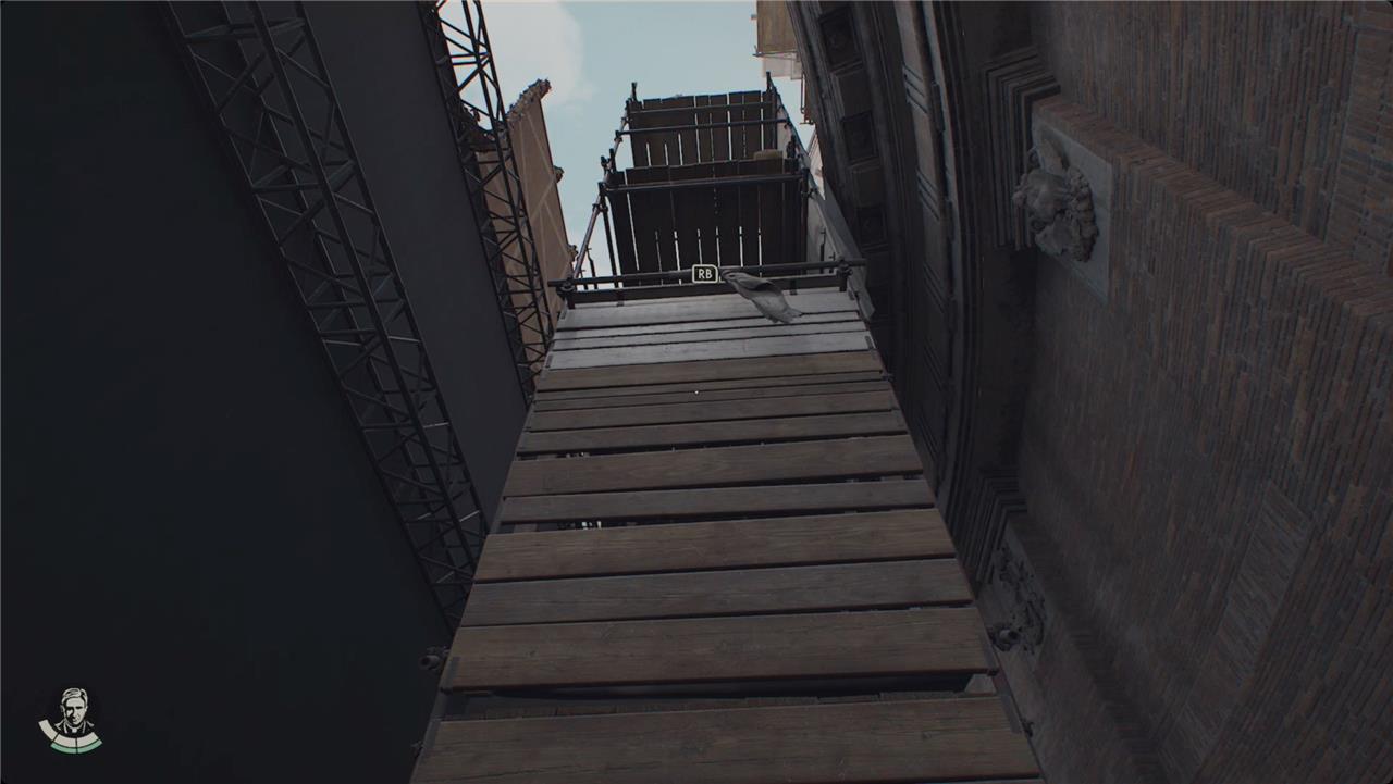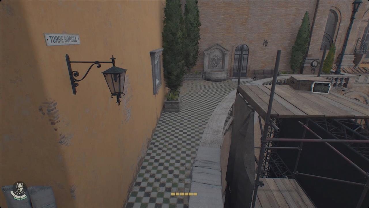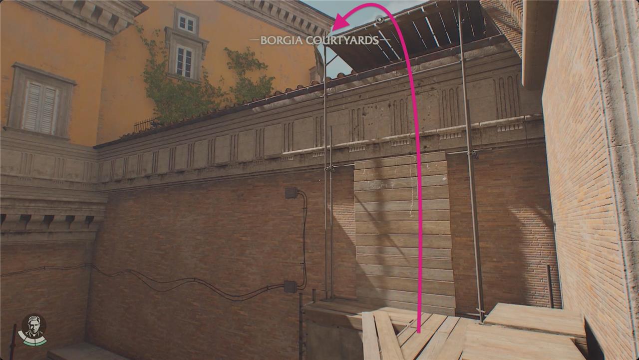 This will bring you to the Borgia Courtyards. Turn right to find more scaffolding to climb.