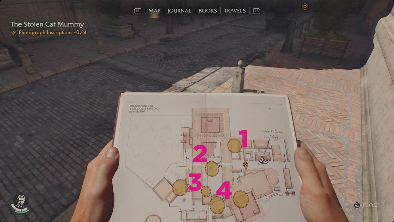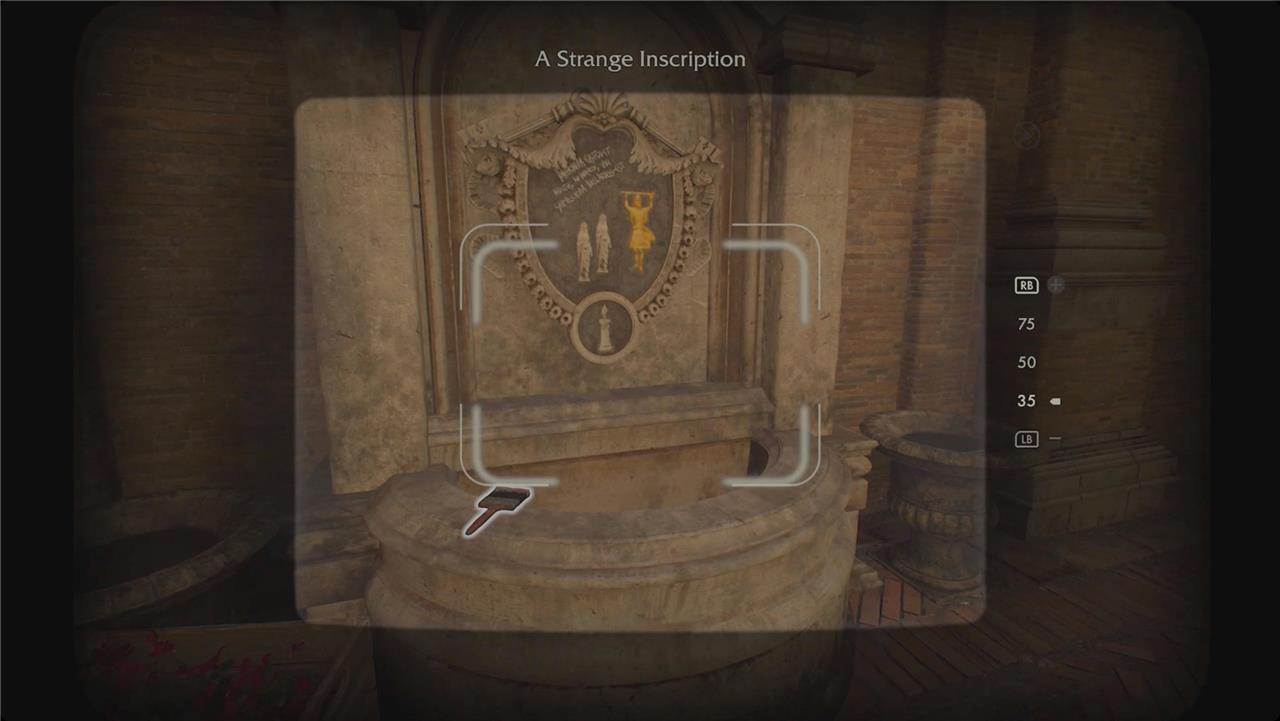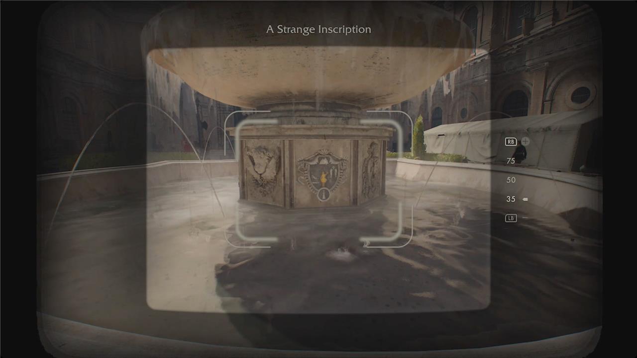 To take photos of Strange Inscriptions in Indiana Jones and the Great Circle, first equip your camera by pressing up on the D-pad when you see the camera icon appear in the top left corner of your screen. Hold the left trigger to bring the camera into focus and use the zoom to align the inscription perfectly within the frame, ensuring the entire design is visible. The game requires precise framing, so you may need to adjust your distance and zoom multiple times until the inscription is correctly captured. Locations for these inscriptions include areas like the Belvedere Courtyard and its balcony, where climbing and careful positioning are often necessary. Successfully photographing these inscriptions is essential for progressing in the quest and unlocking additional content.