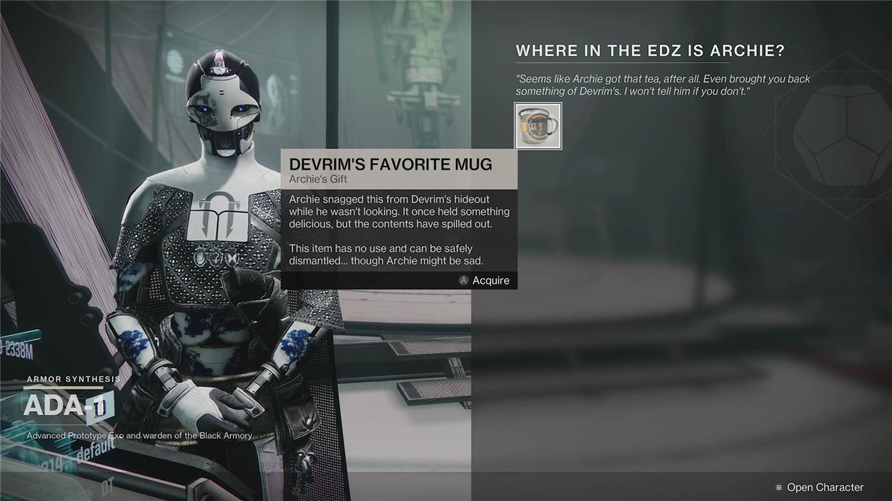 Now, head to the EDZ, and speak to vendor Devrim Kay in his usual spot in Trostland’s church. Once done, the search begins.