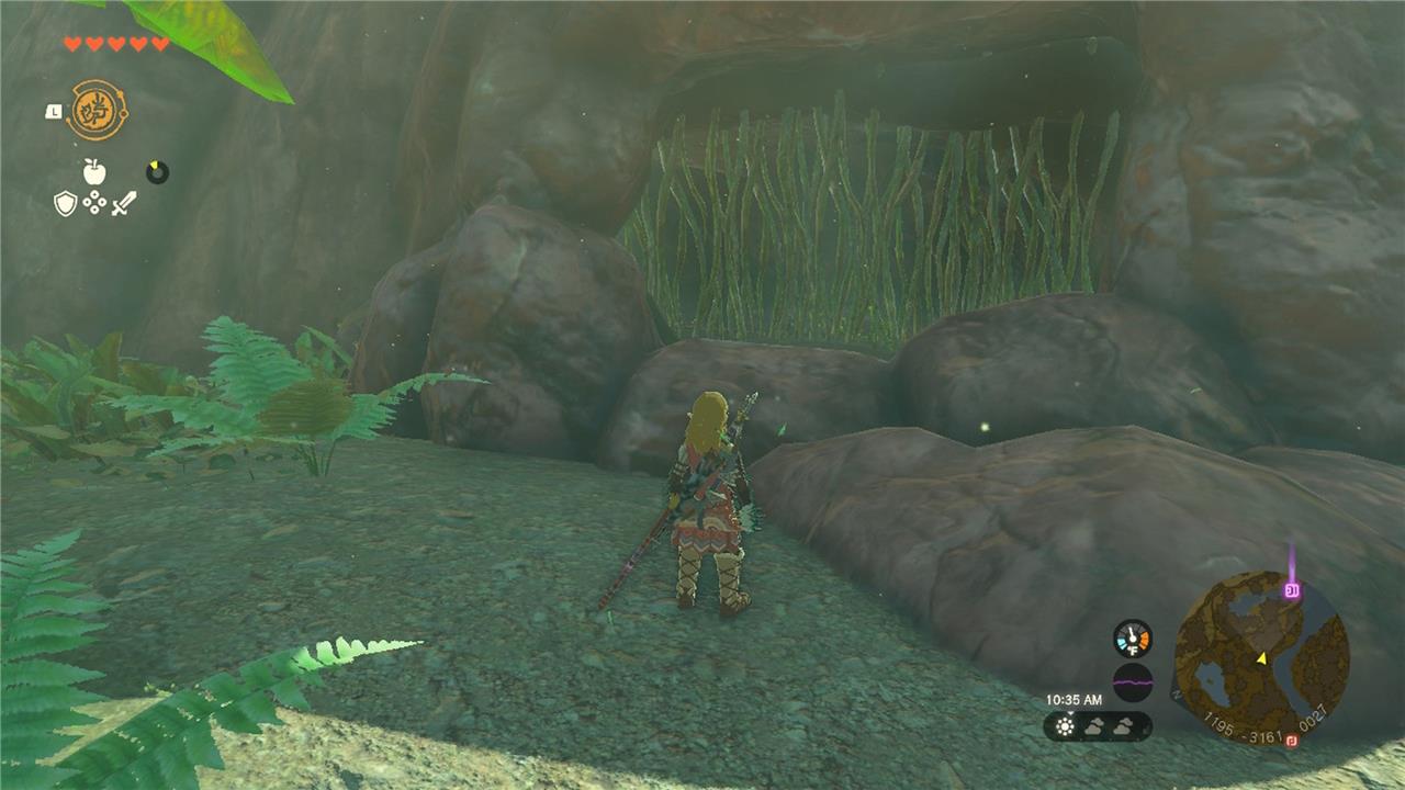 This cave is comparatively simpler and less deadly than the others, though you’ll still need a stamina recovery meal to make it to the end, plus a bomb flower, which you can find inside