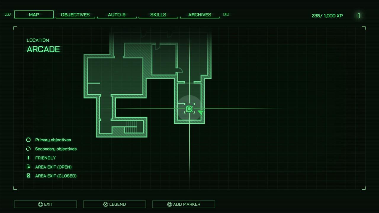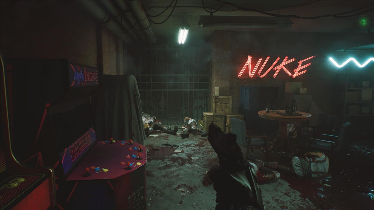 To find the arcade’s secret area, you’ll first have to make your way to the basement. That’s easy enough; just find the drugged-out kid in the arcade bathroom and scan him, which will automatically grant you a warrant to search the premises. Down in the basement, you’ll encounter a gang of Torch Heads. As you make your way to the arcade owner’s office, killing everything that moves, you’ll see the secret area just to the left of a neon Nuke sign. It’s barred by an iron gate.