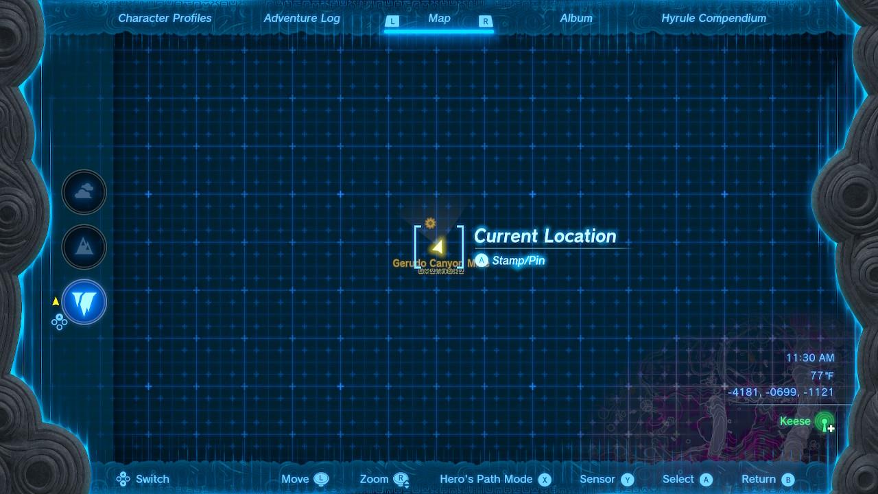 Located in Gerudo Canyon Mine under Gerudo Highlands, at coordinates approximately -4181, -0702, -0702.โ
