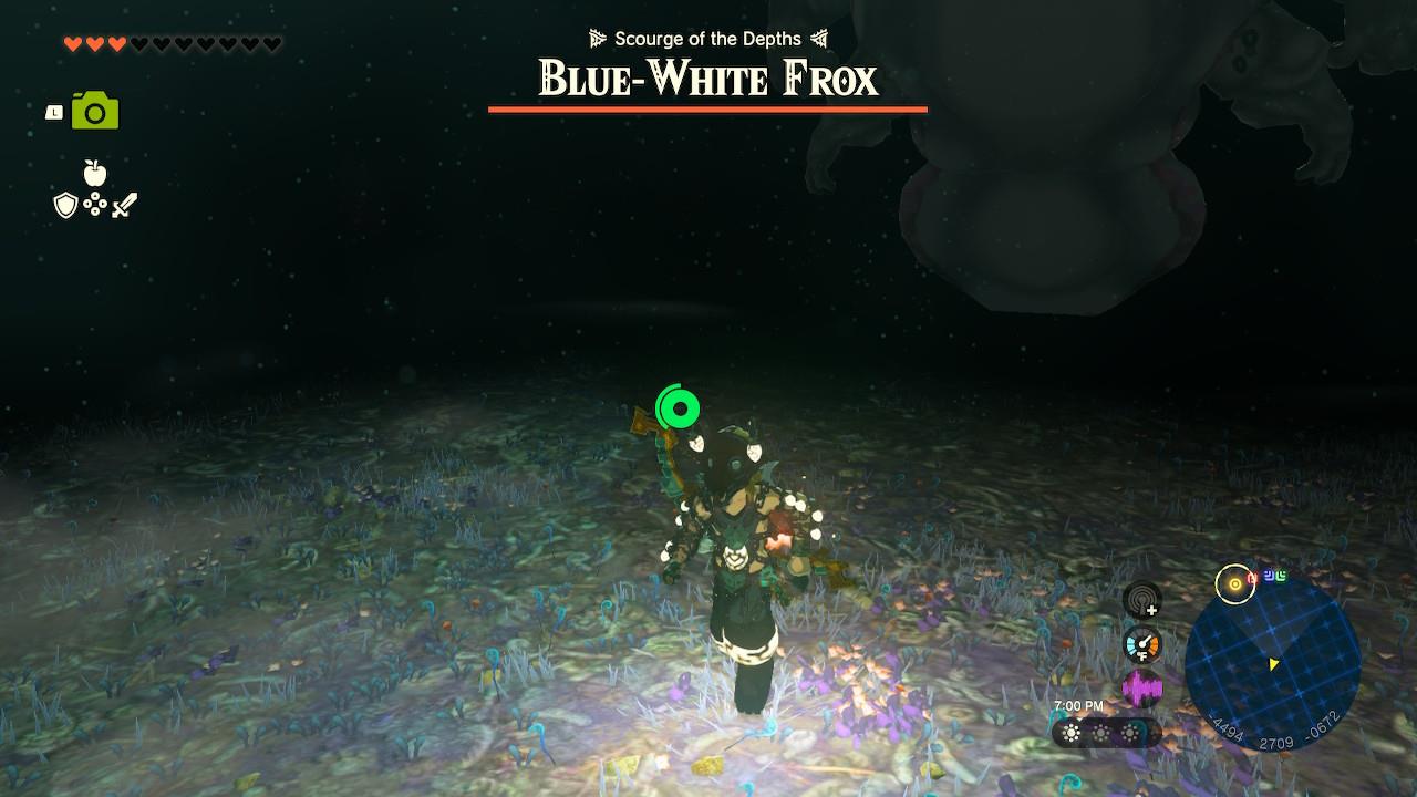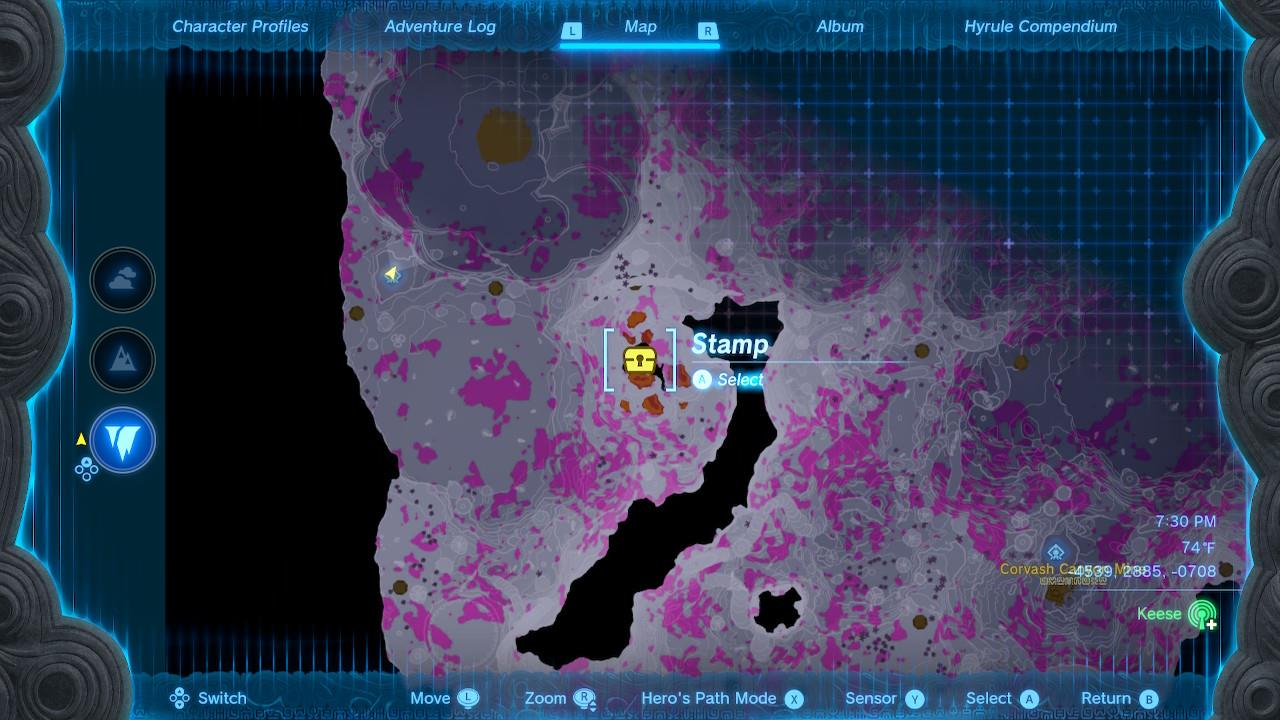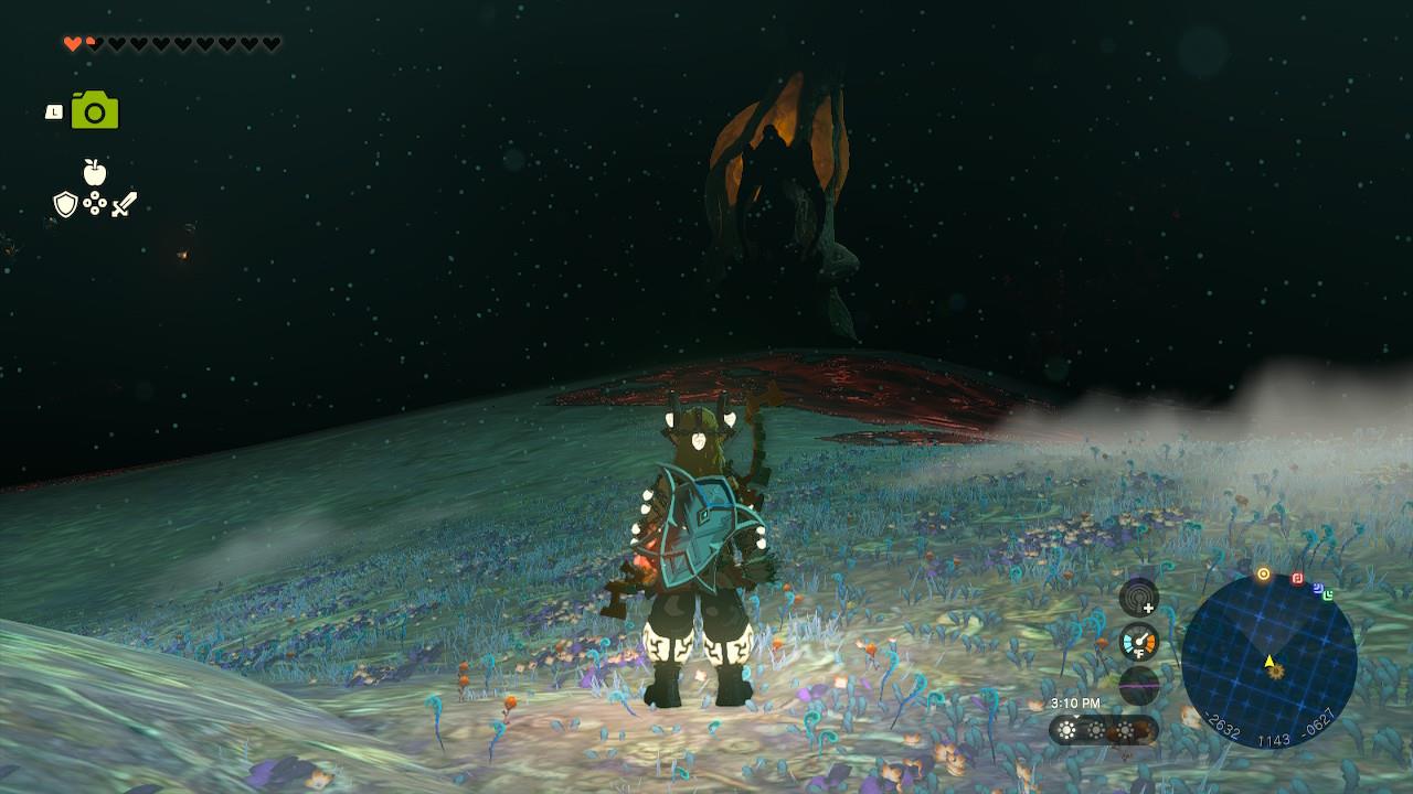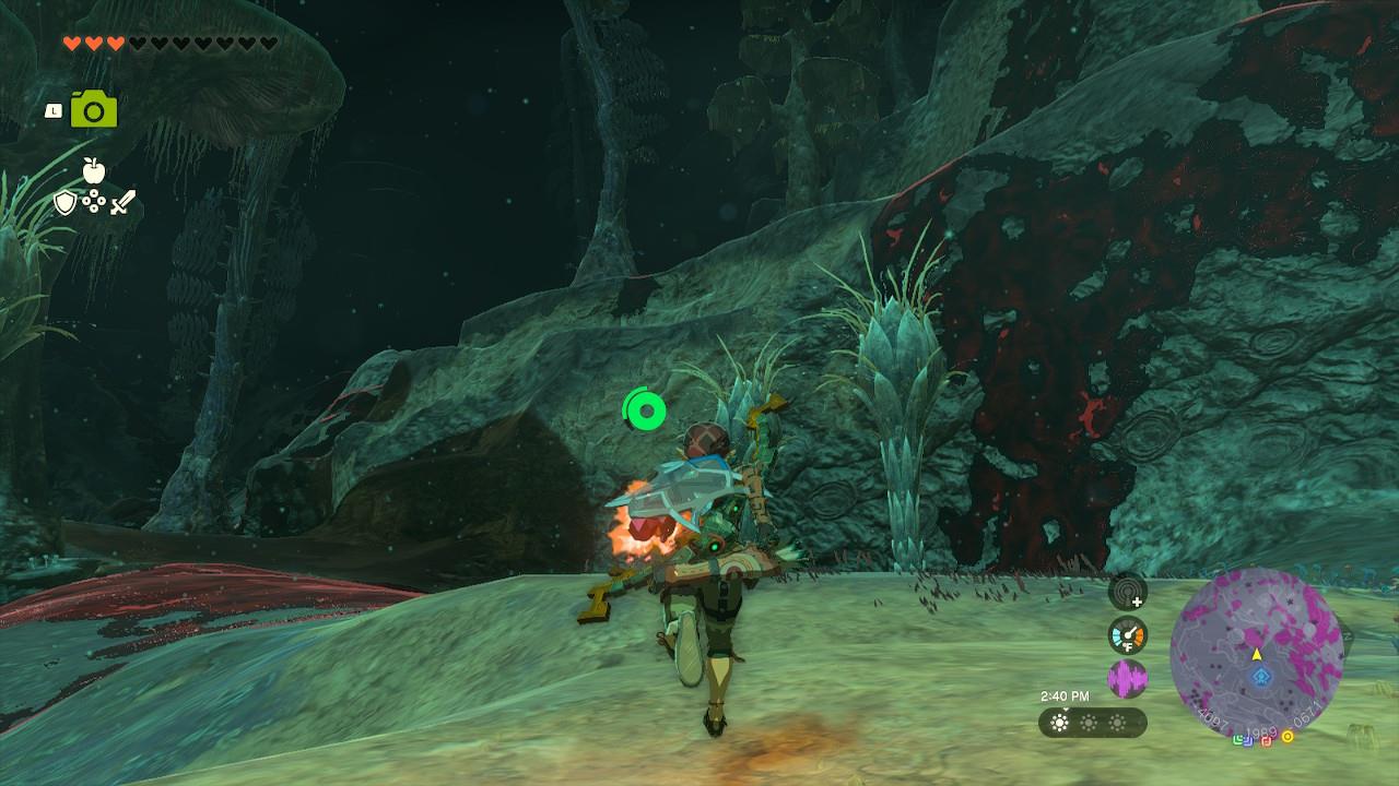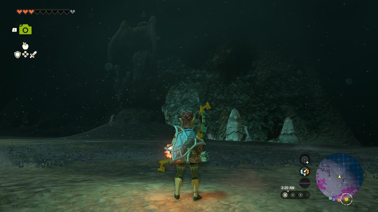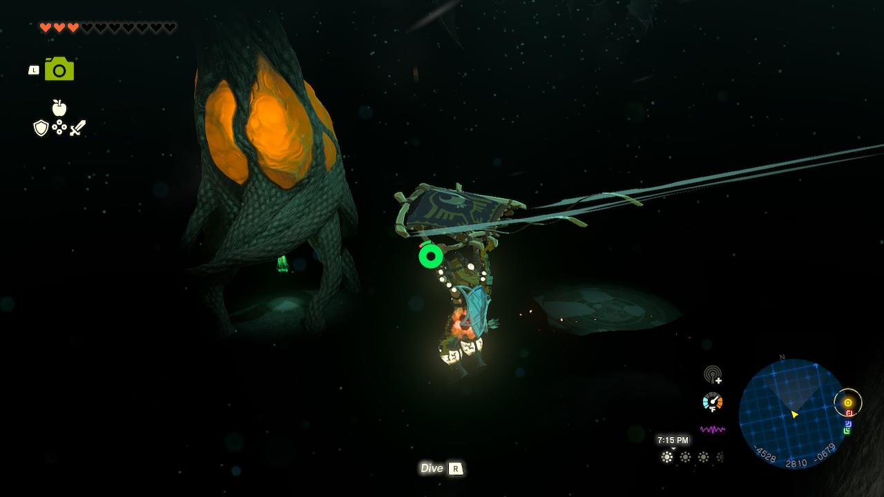 Map Pin: Central-north Depths under Hyrule Ridge; elevated ruins east of Tikanur Lightroot (-2531, 1168, -0623).โ
