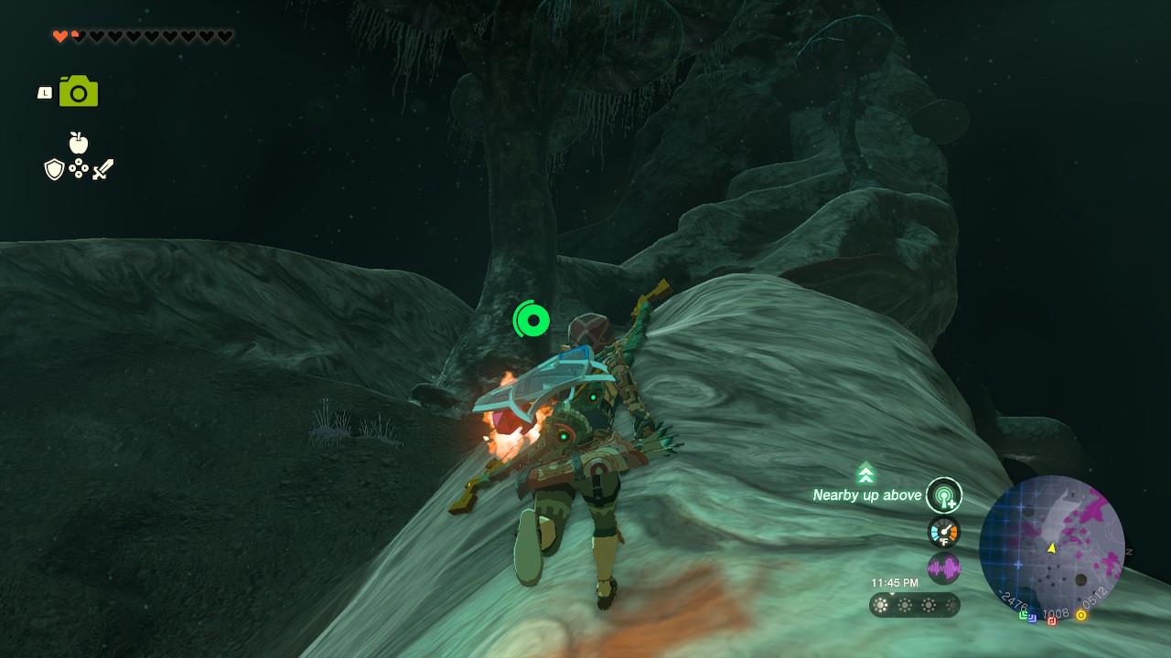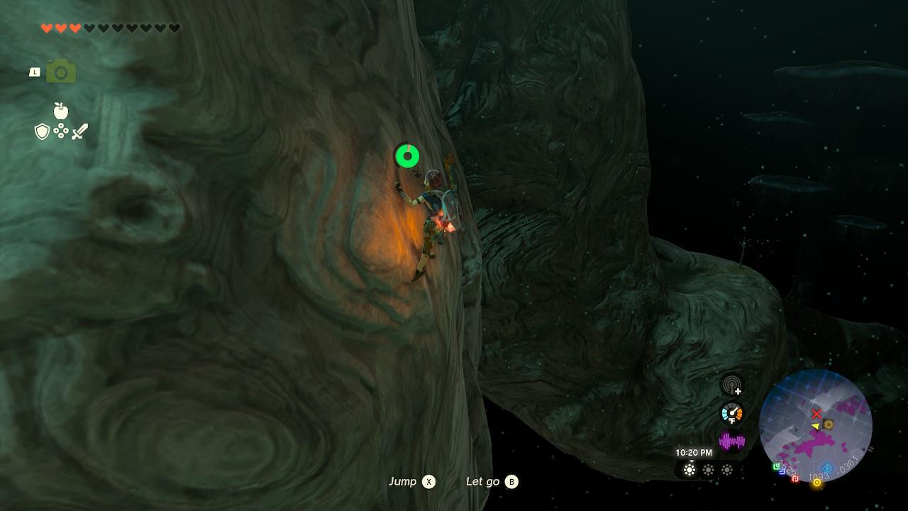 For this, look for any surface Link can stand on to replenish your stamina, and keep climbing as high as you can. As you’re doing this, slowly start turning to the right, using the map as a reference, until the second half of the tree branch is visible.