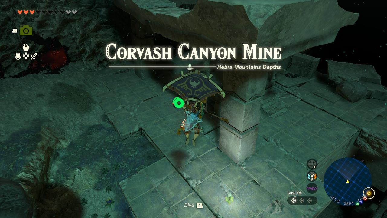 Once you’re getting close to the spot, you’ll come across the Corvash Canyon Mine. Ignore it for now, and activate the Worihas Lightroot at the coordinates (-3352, 2384, -0802).