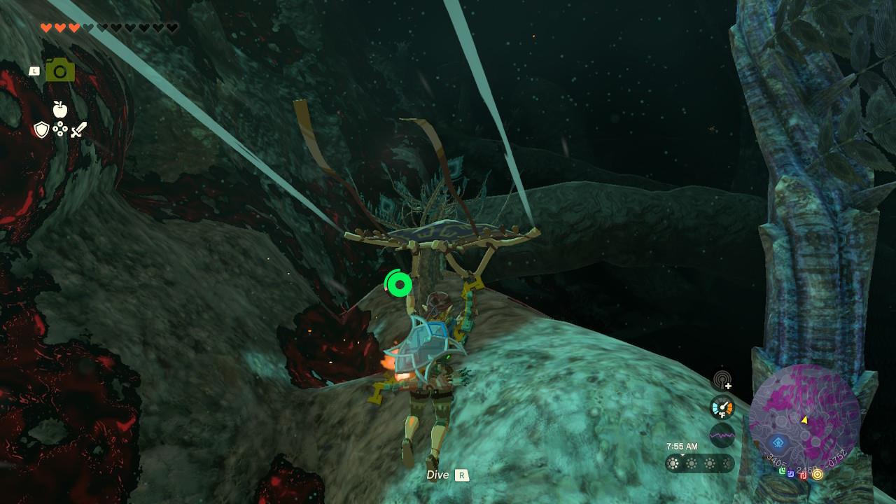 You’ll eventually stumble upon a peak that hits the literal ceiling of the Depths. If you pay attention to the map, the branch cuts itself, which means you’re going to have to glide to the other end.