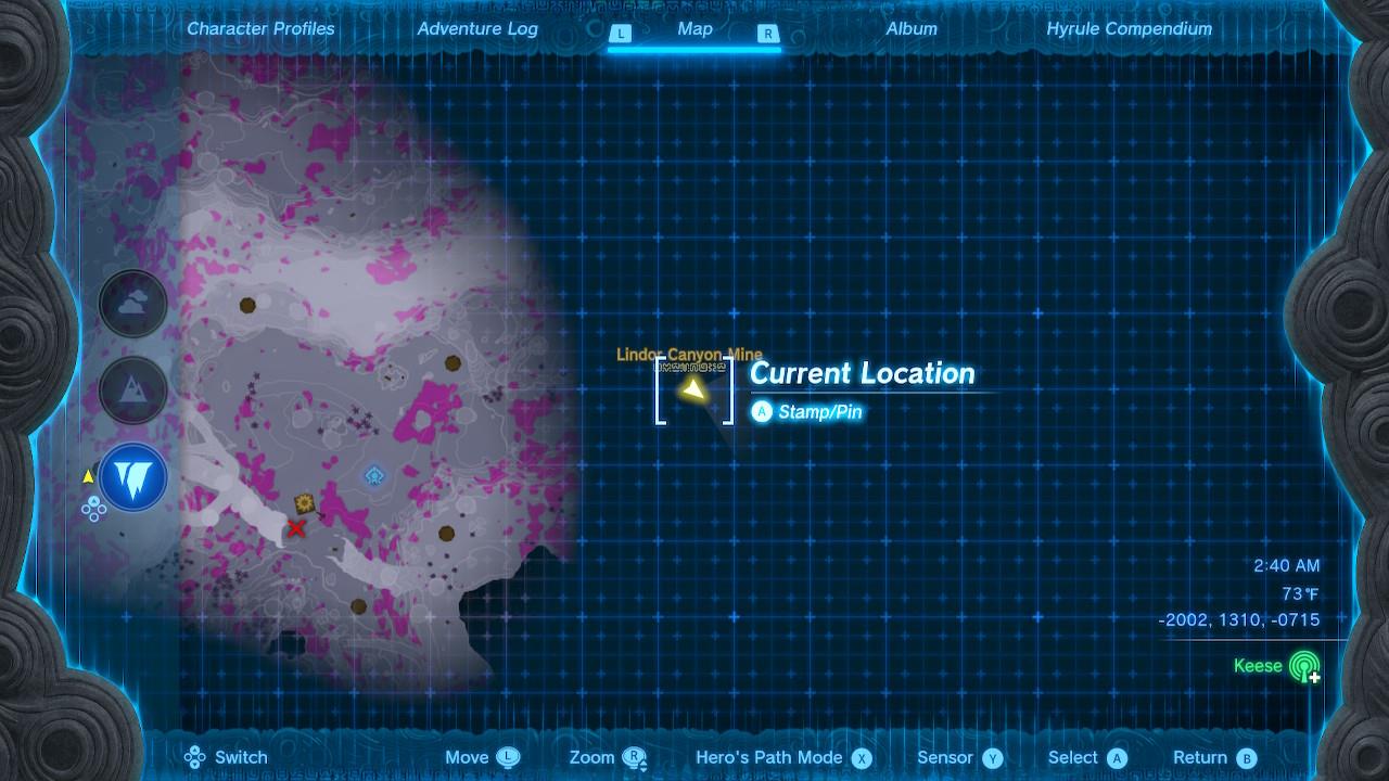 Found in Lindor Canyon Mine under Hyrule Ridge, at coordinates -1999, 1307, -0715.โ