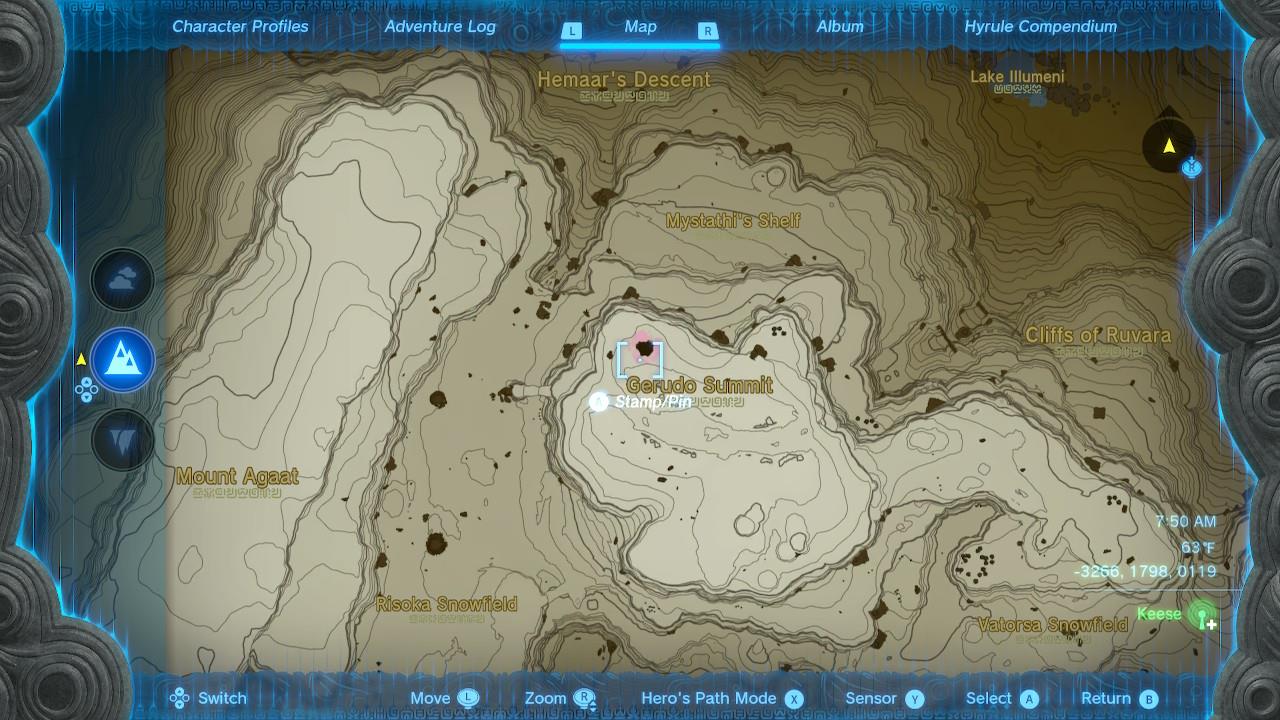 Enter through Gerudo Summit Chasm (-4204, -0647, 0638); from Mustuto Lightroot, go southeast to the central chest in ruins.โ