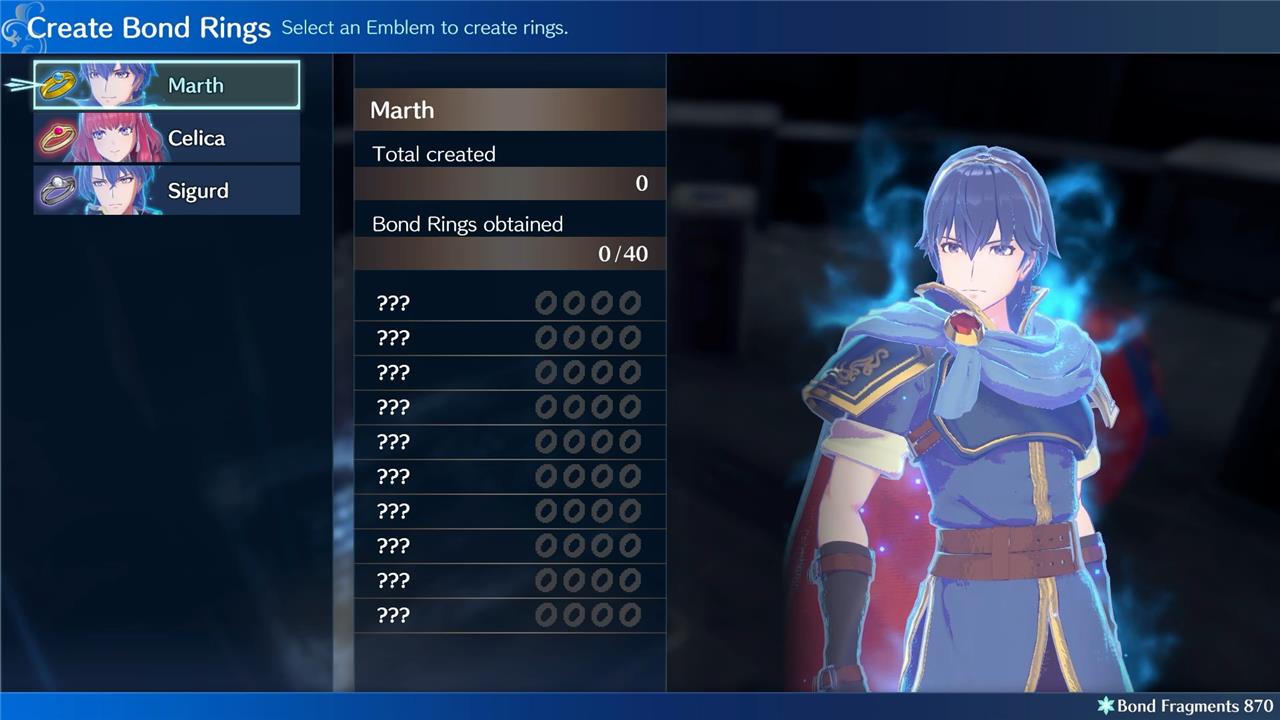 One of the main concepts of Fire Emblem Engage is the use of rings. There are two different kinds of rings: Emblem rings and Bond rings. Emblem rings give a character the powers of Emblems from previous Fire Emblem titles, while bond rings raise the stats of its beholder. Characters must have a ring equipped to gain skill points (SP), a resource used to inherit skills from Emblems, which will make your characters stronger down the road. Create rings at the Ring Chamber using bond fragments, a resource gained from a variety of activities on the Somniel, and equip them on any character heading into battle.