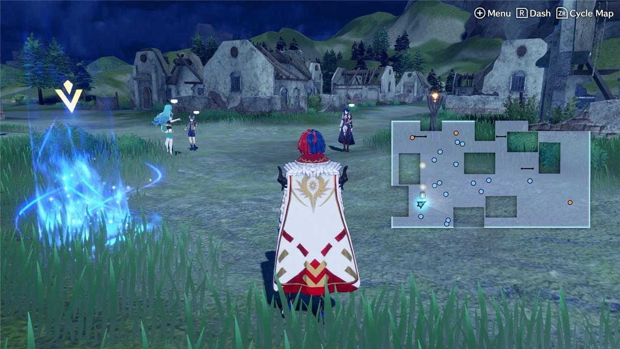 After you complete a mission, you can explore the battlefield to find adoptable animals and valuable resources. These animals, indicated by an orange dot on the map, can be taken back to the Farmyard where they’ll give you more ingredients and goods, but you’ll need to upgrade your donations level at the bulletin board in order to adopt them. Items are indicated on the minimap by a pulsing white dot, so head on over to each dot to find materials to be used around the Somniel.