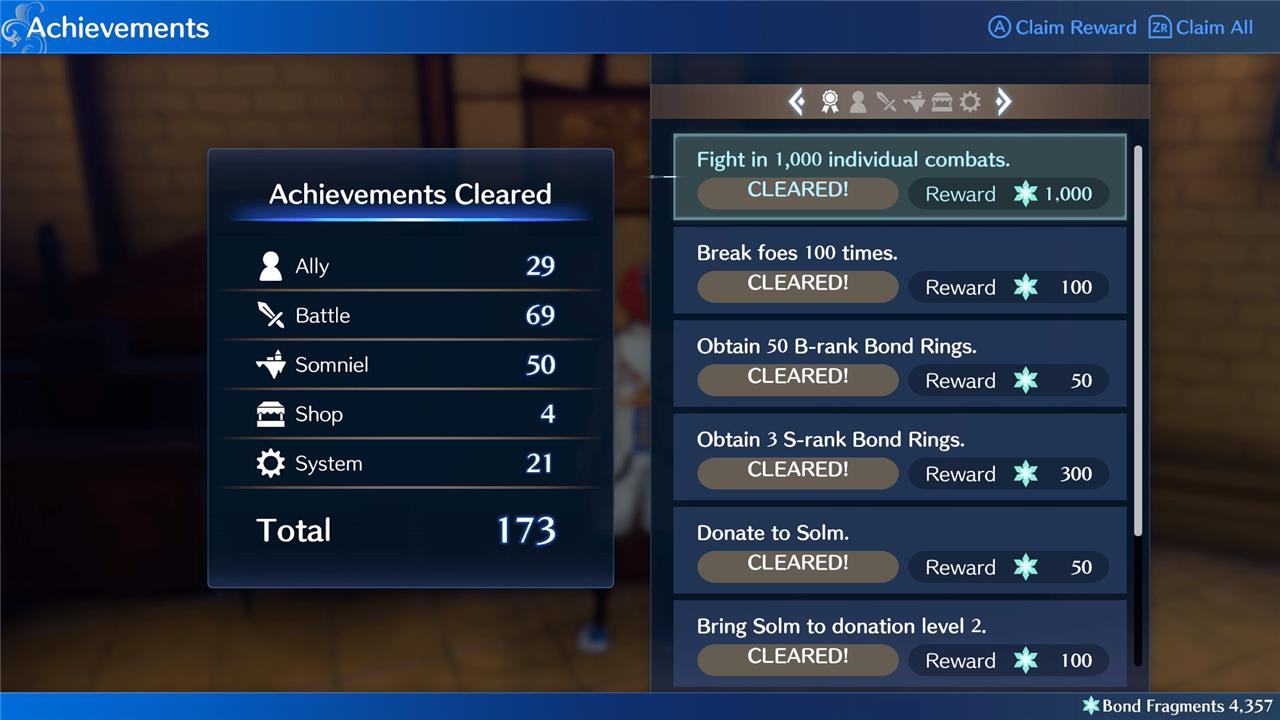Talk to allies during post-battle exploration for around 50 bond fragments per conversation, available after Chapter 1. Visit the Somniel’s bulletin board to claim rewards from achievements after Chapter 3, which accumulate from routine actions like battles and gifts. Pet and feed Sommie for 200 fragments per visit after every fight, while fishing, training, or wyvern riding at the Somniel each yield 50 to 200 more.​