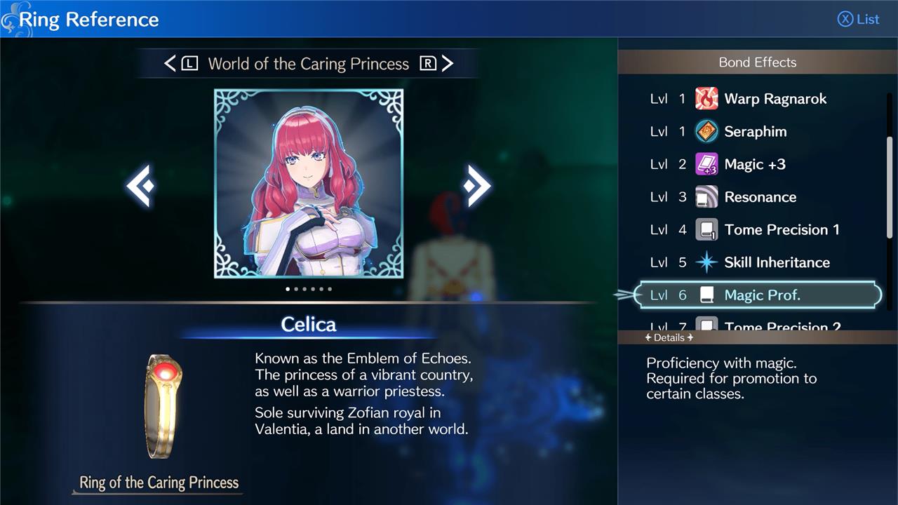 To gain weapon proficiency, you need to raise the bond between you and the appropriate Emblem at the cost of bond fragments, a resource gained by completing a variety of tasks and socializing with allies. For example, once the bond between you and Celica reaches level eight, you’ll receive magic proficiency. Check what proficiencies you can gain from your Emblems in the Ring Reference section of the Reference menu while at the Somniel.