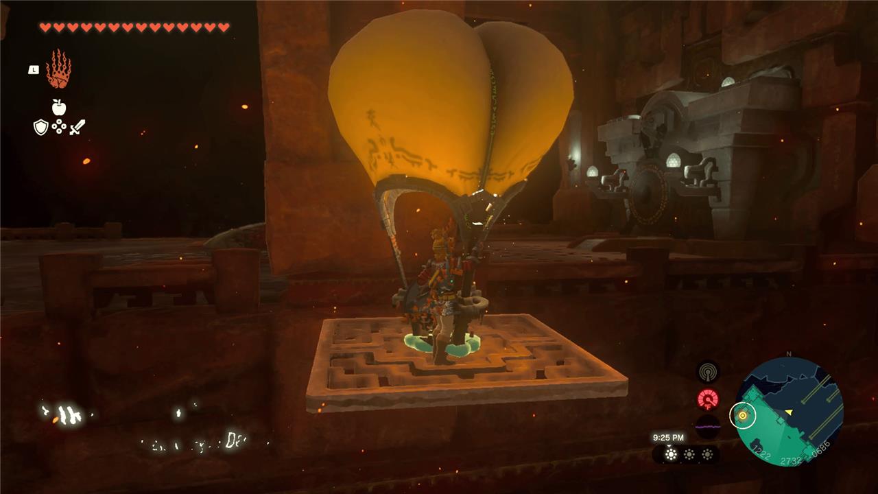 Take the balloon out and attach it on top of one of the metal plates using Ultrahand. Use a torch or wooden weapon to power the balloon and float upwards.