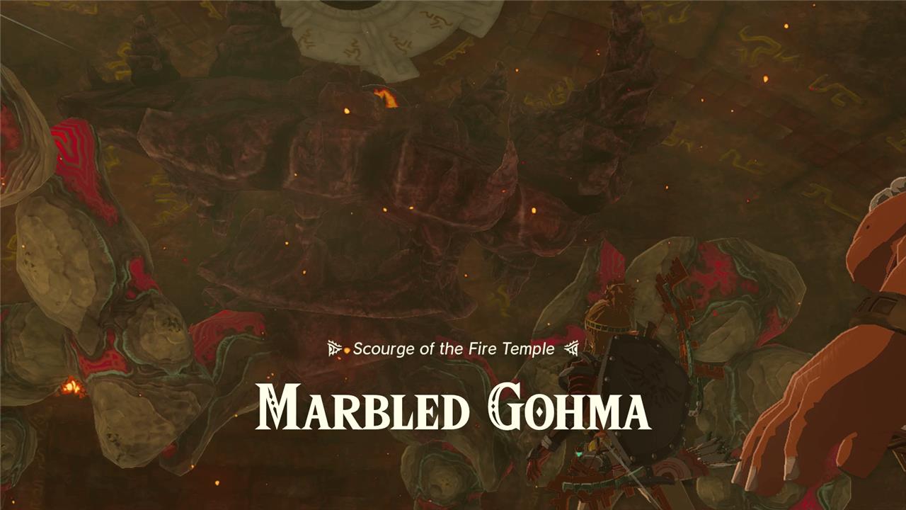 Marbled Gohma is the Fire Temple boss in The Legend of Zelda: Tears of the Kingdom, a massive crab-like creature with explosive rock attacks and a vulnerable eye. Defeat it using Yunobo’s Charge ability alongside melee strikes on its weak points across two phases.