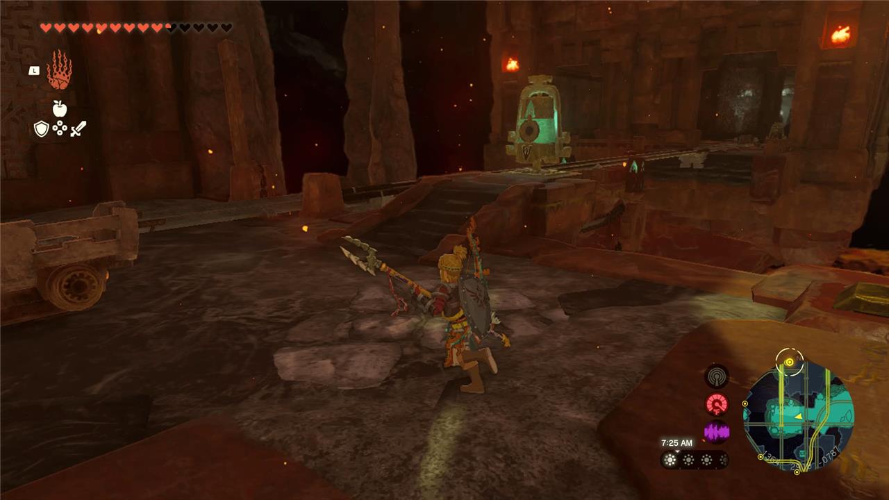 Several chests are hidden throughout the Fire Temple, many of them placed on narrow ledges or behind lava flows. Use the Mine Cart rails and switches to reach higher platforms and explore side passages between major rooms. Some chests hold powerful weapons or shields, while others contain useful materials like Zonaite and opal. Keep an eye out for cracked walls or metal grates that can be moved with Ultrahand to uncover secret compartments.