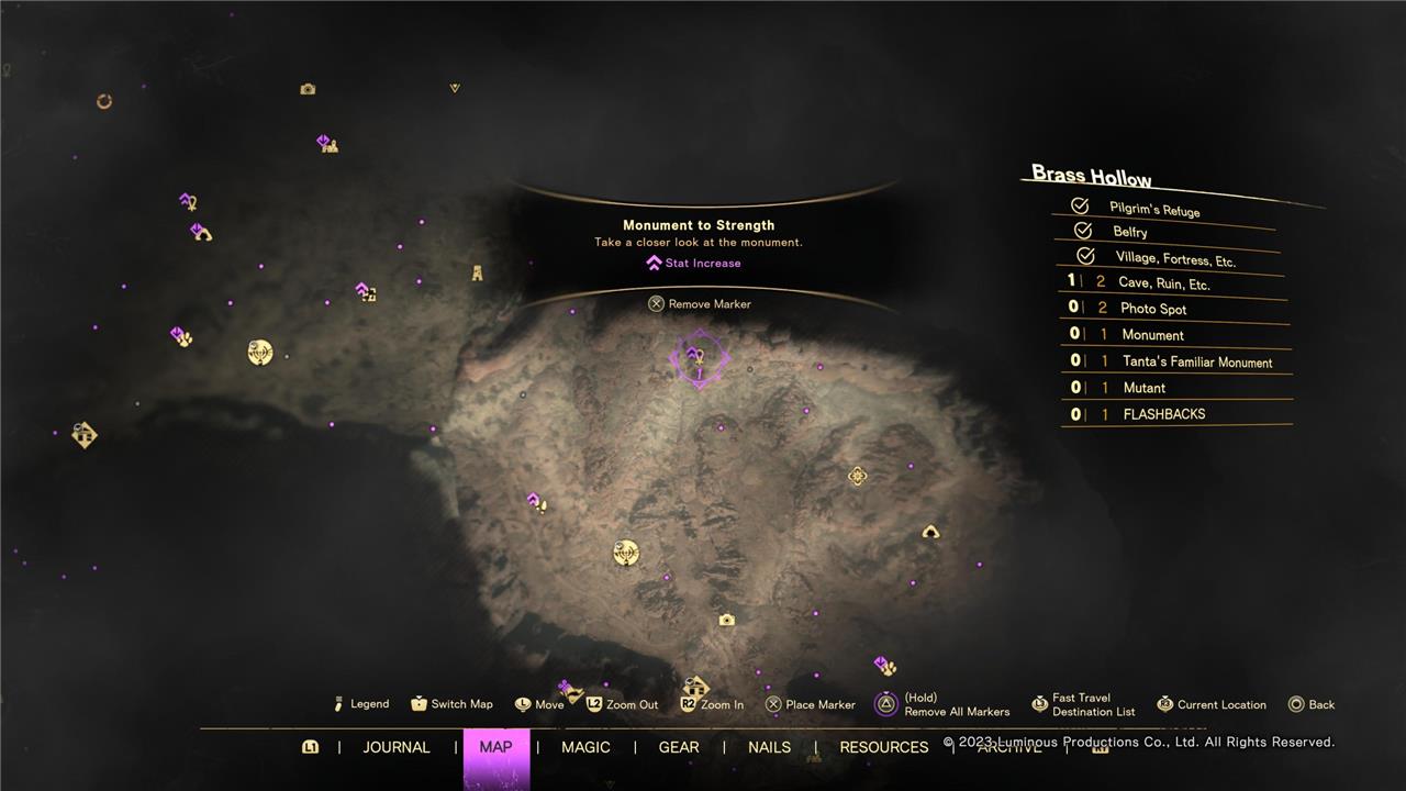 Forspoken is post-apocalyptic, meaning its open world is for the most part conveniently devoid of characters (i.e., anything actually interesting and worth interacting with). You won’t get anything special for 100%-ing a particular region, either, so unless you’re a true completionist to the bone, it’s not worth ticking off every ticky box. Still, some general points of interest should be on your radar: