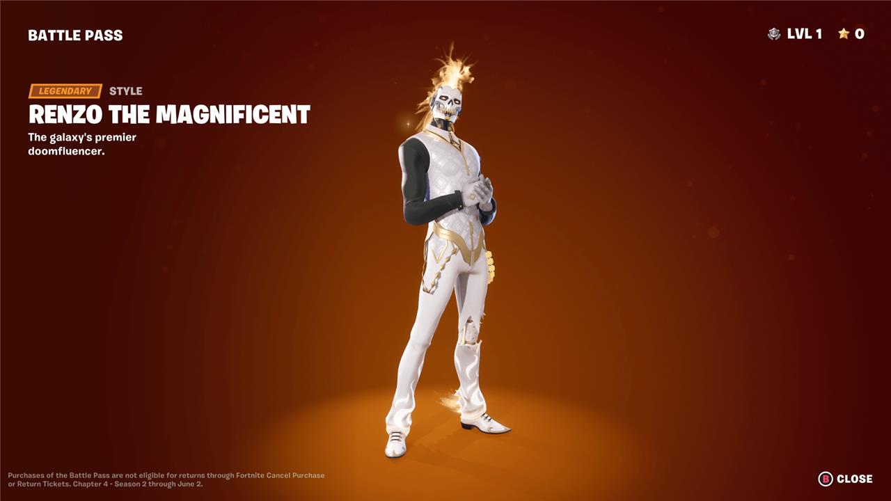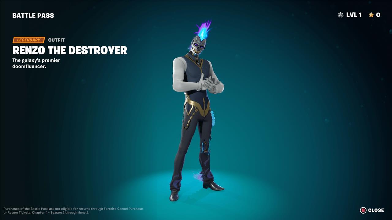 Renzo the Destroyer brings a striking futuristic style to the Fortnite Chapter 4 Season 2 battle pass. With golden armor, a towering frame, and sharp detail in his design, he stands out as a dominant figure among the new skins. His character theme highlights power and charisma, making him a favorite for players who enjoy bold, assertive looks that match his fierce reputation on the battlefield.