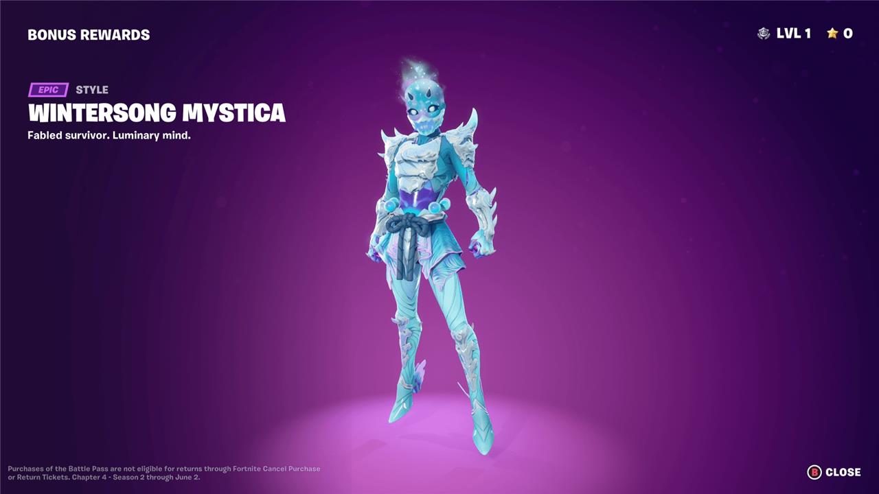 Unlockable style: Wintersong Mystica (bonus reward after completing battle pass):