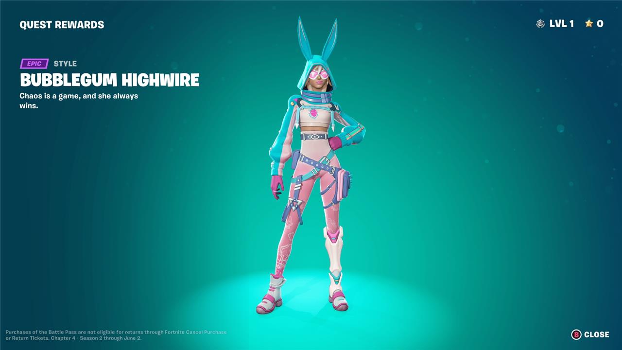 Unlockable style: Bubblegum Highwire (quest reward):
